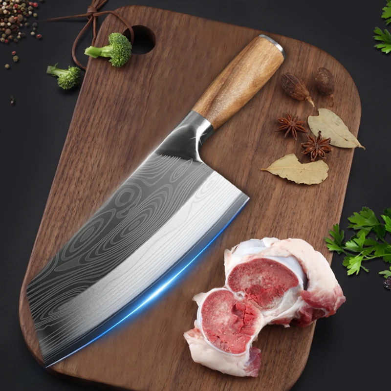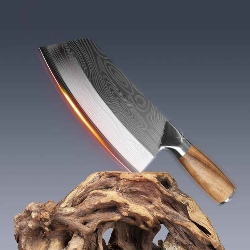 7,5 Zoll Edelstahl Blumenmuster Fleischbeil Chinesisches Messer Metzger Küchenmesser Kochmesser