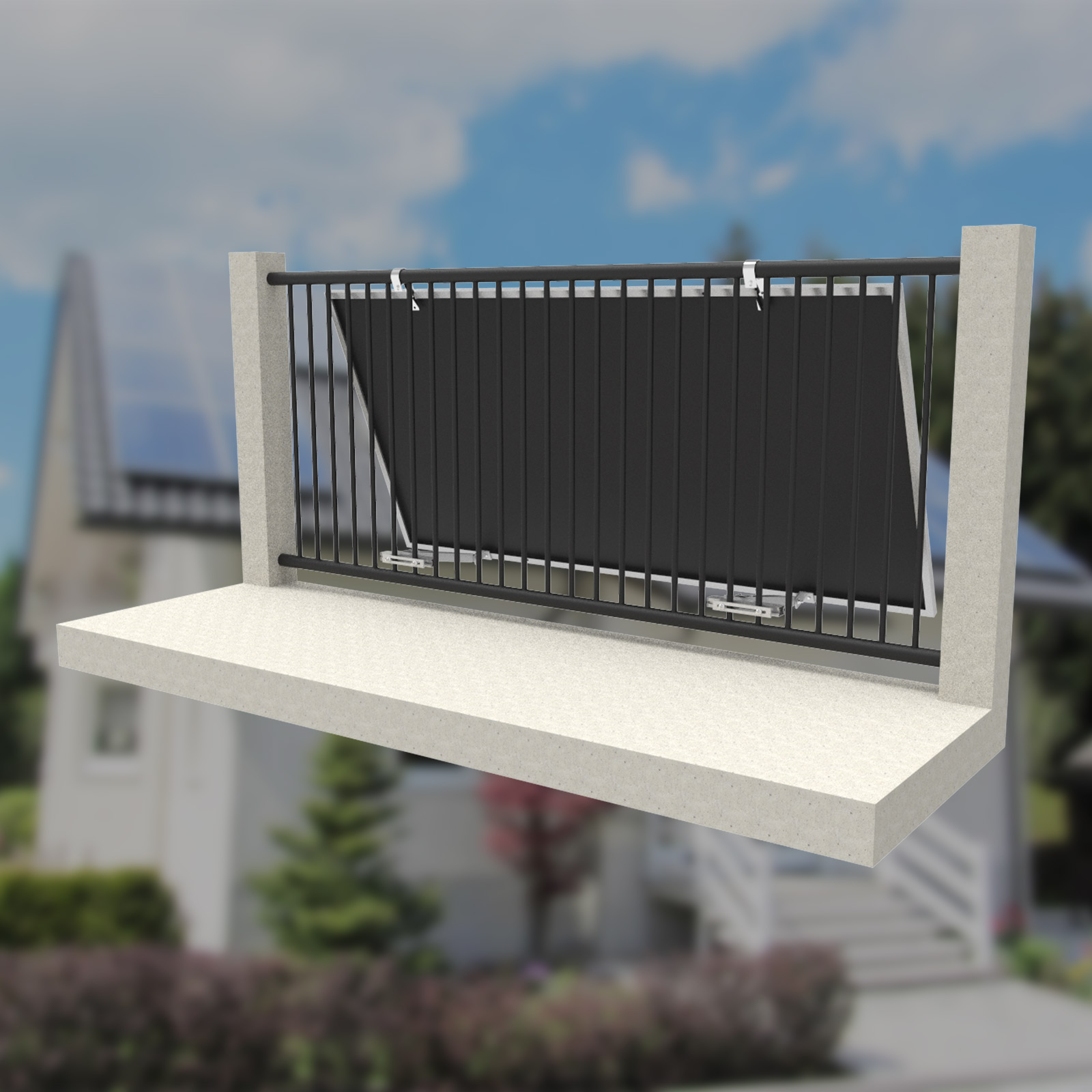 Solarmodulen in Balkonbereichen konzipiert. Dank der individuell einstellbaren Befestigung der Halterungen können die