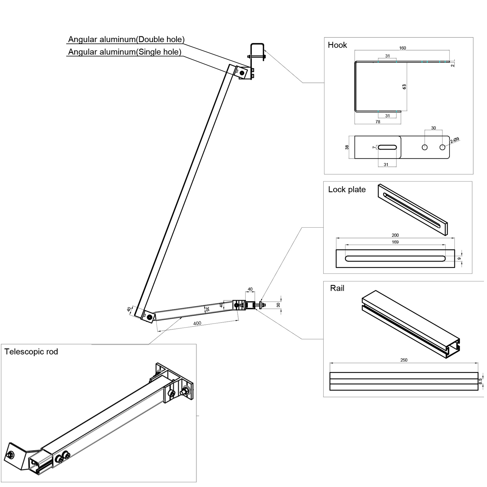 Profilschiene-Maße: 400x30x40mm (LxBxT)