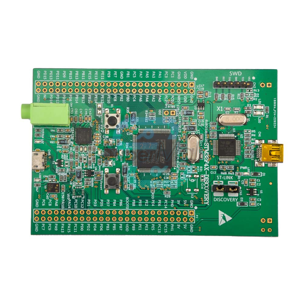 Development board based on STM32F407VGT6 development board design, integration with ST-LINK/V2 simulation downloader (but only provide SWD interface), remove youremulator or download it. Add more acceleration sensor LIS302DL, MP45DT02 digital microphone, loudspeaker drive and a micro-AB USB interface.