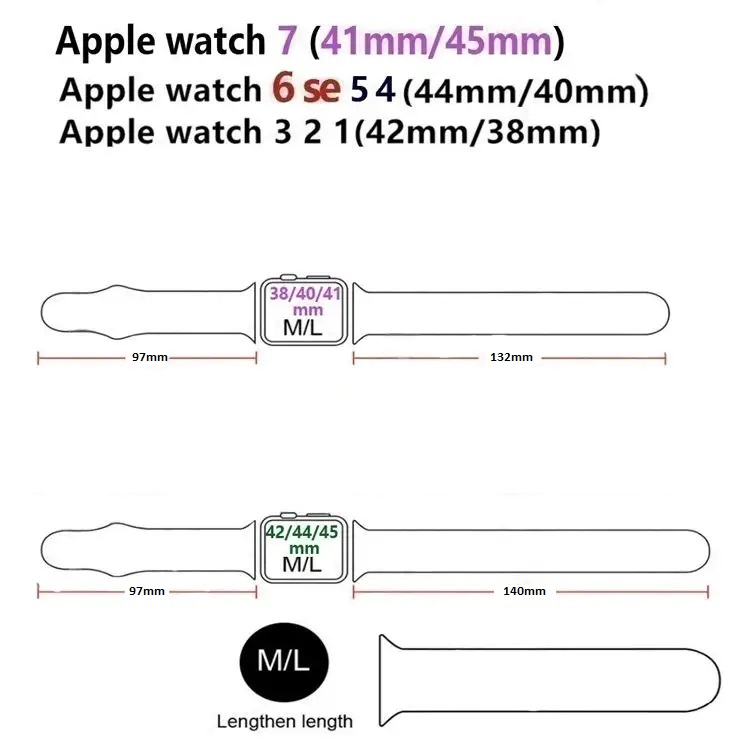 PER IL MODELLO DI CINTURINO per 42mm / 44mm / 45mm la LUNGHEZZA L è di 97mm + 140mm