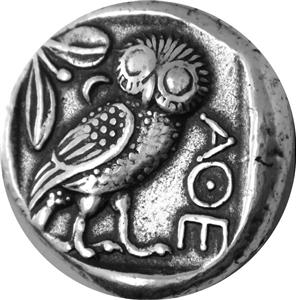 - Size: 24 mm OBVERSE: Head of Athena wearing a crested helmet with olive leaves and floral scroll. REVERSE: Owl with olive branch and crescent within incuse square.