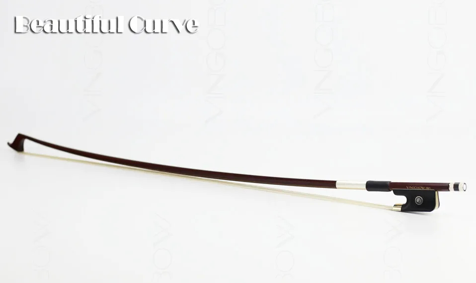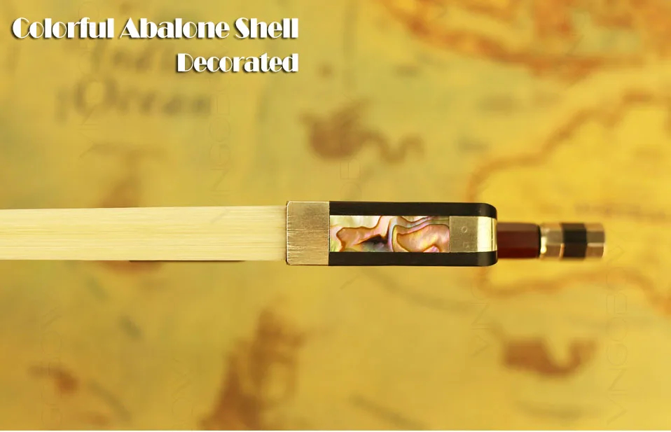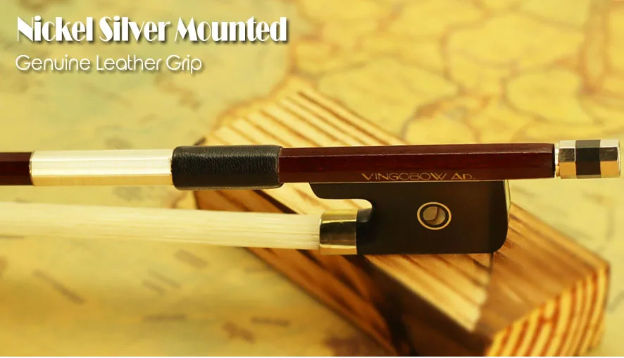 The bow is selected Brazilwood stick, air dried more than ten years. Octagonal stick shape, great wooden bow hand feeling. Adopting unbleached Mongolia horsehair, it will offer you sweet sound. Black ebony frog shows natural wood grain, and is decorated with classical parisian eyes. This model is fully mounted with nickel silver. Genuine leather grip, elegant nickel silver thread winding. All parts are fitted by a same experienced maker from the start to finish. Even it's our cheapest bow, its looking and playing performance are very different from those bows attached with cello. It's a good bow for your choice!
