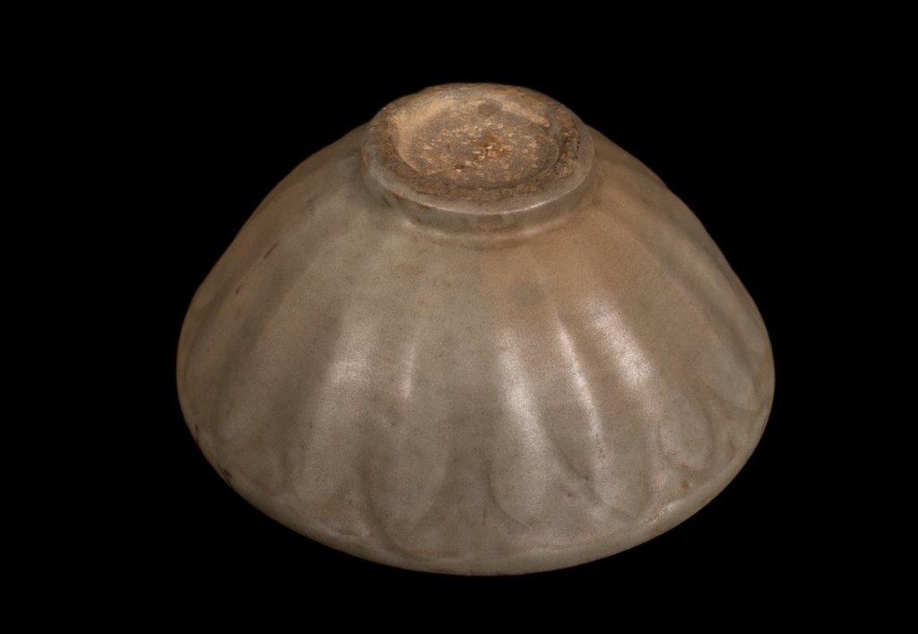 Eine chinesische Steingut- Schale. Die Außenseite modelliert