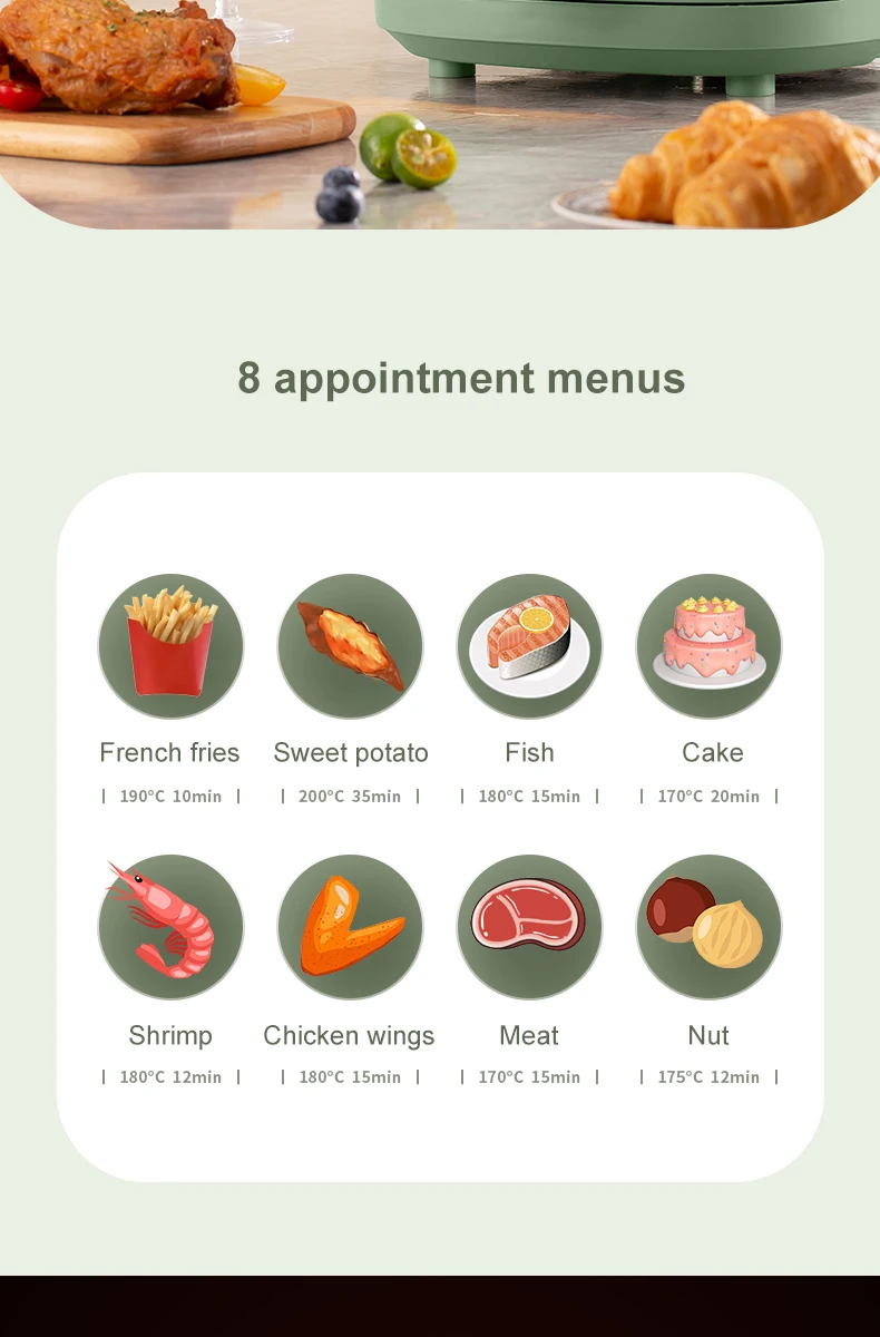 4. 1350W heats up very quickly, high-power fast frying and baking and roasting.
