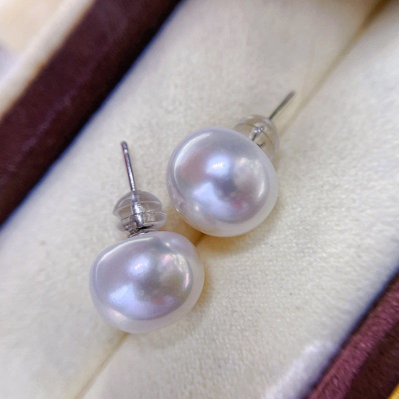 earring Style :AAA 13-14 mm White Women Gift Wedding Natural Flat Freshwater Pearl Earring