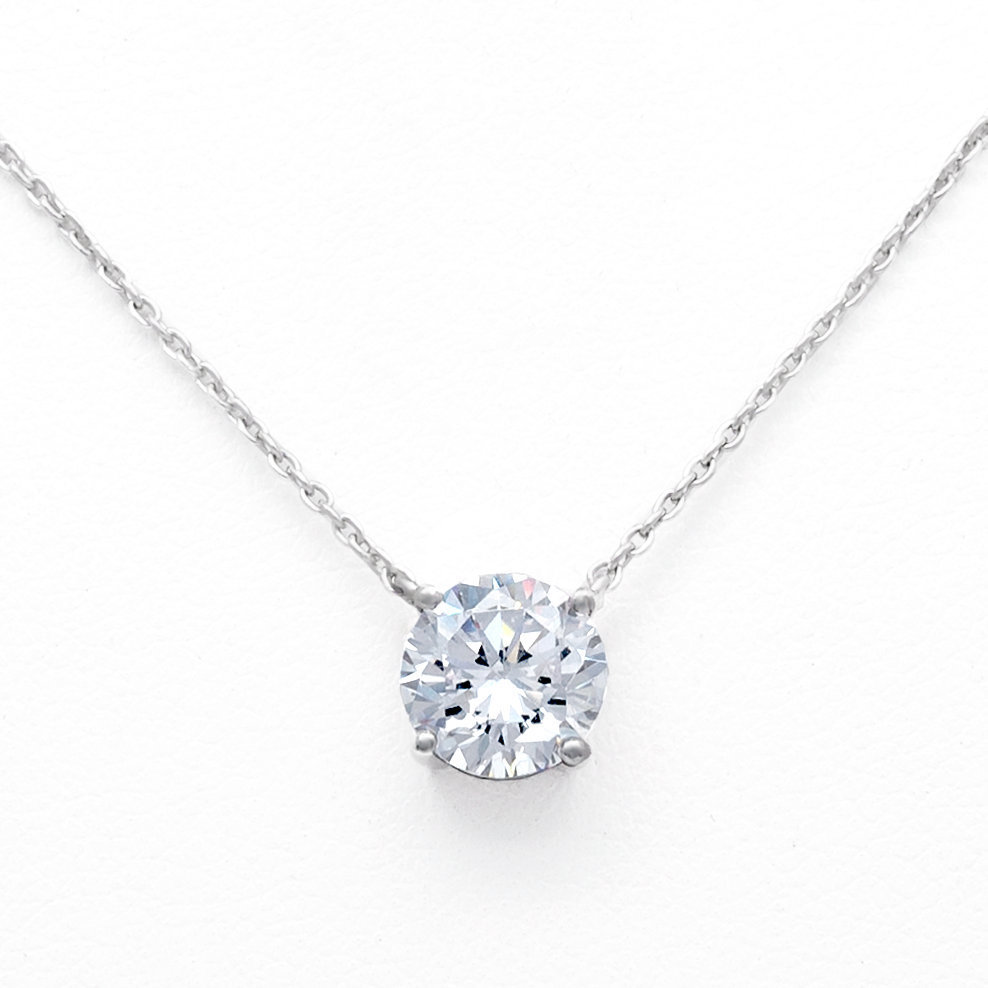 TILO Jewelry Solid 925 Sterling Silver Solitaire Round Brilliant Necklace Simulated Diamond CZ Stone 4-Prong Basket Setting CZ Love Minimalist Solitaire Classic Engagement Wedding Charm Pendant Necklace Handmade Fine Jewelry Gift for Women, Girls, Unisex