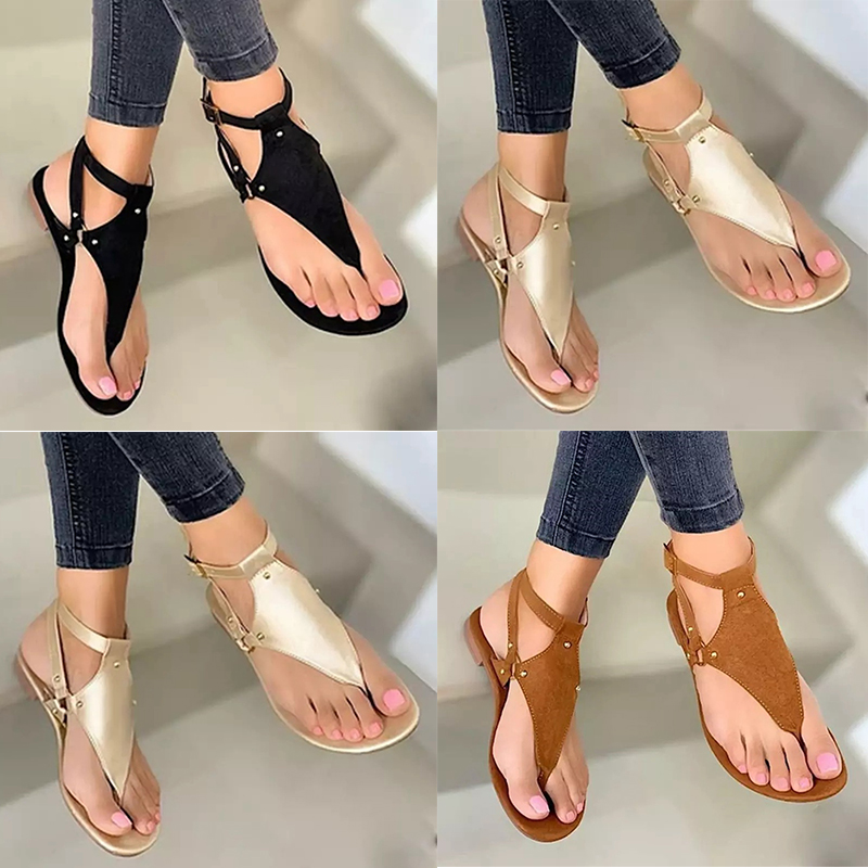 Summer New Cross-Border Foreign Trade Large Size Solid Color Flip-Toe Women's Daily Casual Flat Sandals in Stock Wholesale. Product category: Casual sandals