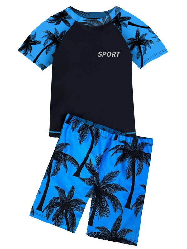 Kurzärmlige Badetops mit Rundhalsausschnitt und den Buchstaben SPORT auf der Vorderseite, bedruckter Stil.