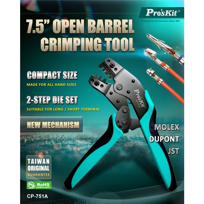 Introducing the Eclipse Tools Pro'sKit Compact Crimper for Open Barrel Contacts AWG 30-24, 22-18, your go-to solution for all your crimping needs. Designed with precision and efficiency in mind, this tool empowers electricians, DIYers, and professionals alike to create secure and reliable electrical connections with ease. If you’ve ever struggled with inadequate crimping tools or faced frustrating electrical projects, the CP-751A will revolutionize your experience, ensuring that you achieve optimal results every time.