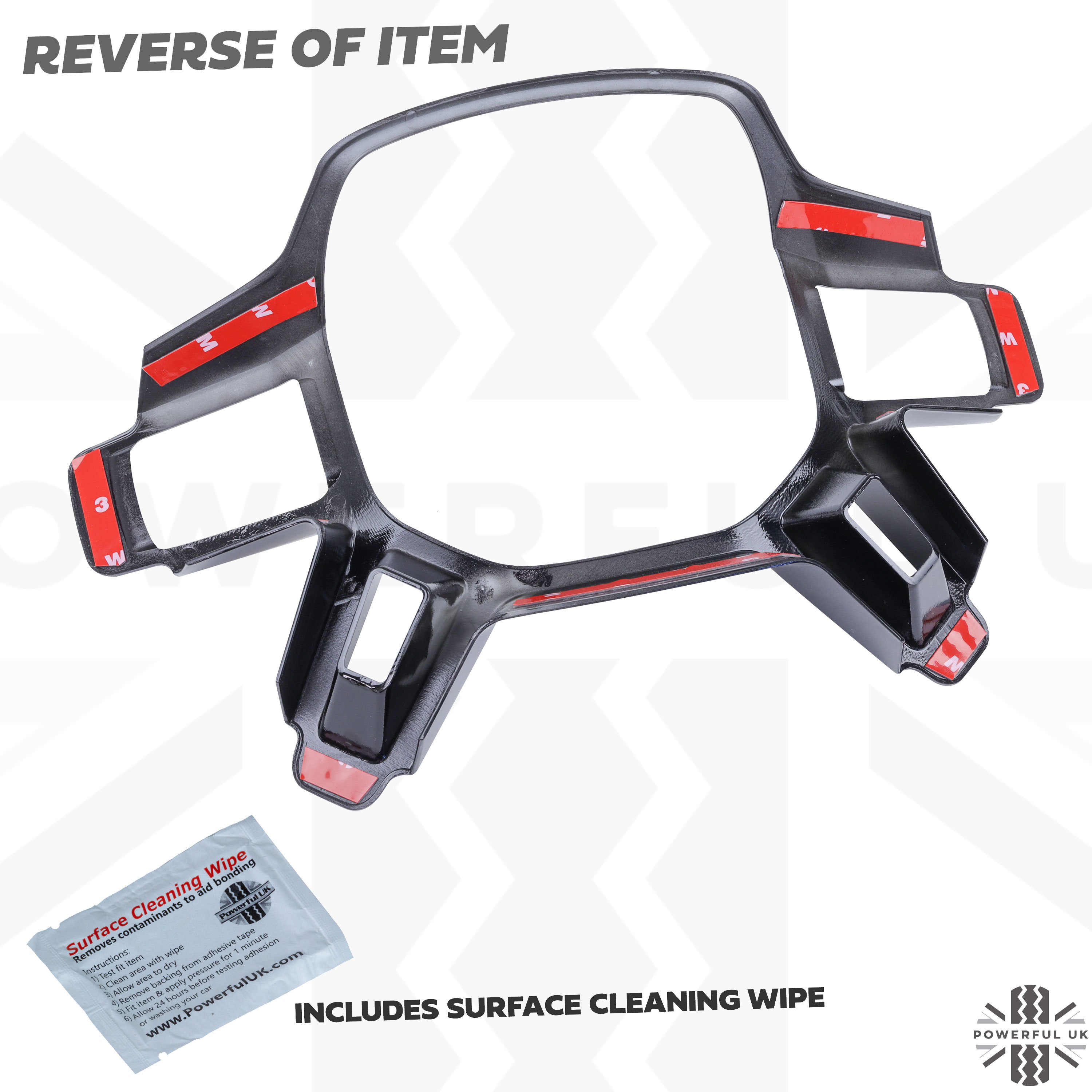 The cover is pre-fitted with automotive grade self adhesive tape.