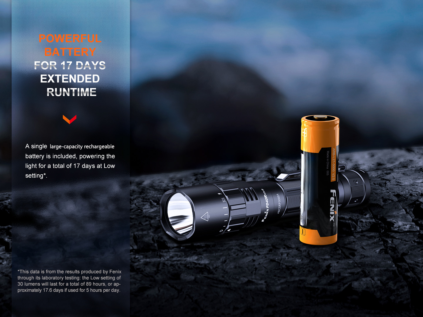 Contents in Package: Fenix PD40R V3.0, Fenix ARB-L21-5000 V2.0 battery, USB-C charging cable, Holster, Lanyard, Spare O-ring