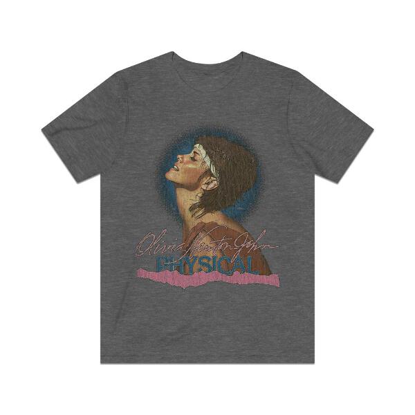 Description Physical is the eleventh studio album by British-Australian singer Olivia Newton-John, released on October 13, 1981. Recorded and mixed in Los Angeles, Physical became one of Newton-John's most controversial and sexual records, and her most successful studio album. Musically, the album features considerable use of synthesizers, and it explores lyrical themes such as love and relationships, sex, kinesthetics and environmental protection. Upon its release, the album received positive reviews from music critics, many of them considering it to be Newton-John's best effort. The album charted high in several countries, including the United States, Japan and her native Australia, becoming one of the most successful albums of the early '80s. It also ranks among the best-selling albums by Australian solo artists, selling more than ten million copies worldwide. Details Like all our designs, this one is treated with our signature ‘relic-ing’ process which includes our own secret recipe of hand-painted chipping, cracking, fading, and just the right touch of yellowing to ensure that it looks the part of a true vintage imprint.** We lay these works of art down on premium Bella+Canvas 3001 Unisex Jersey Short Sleeve Tees, one of the softest, best-wearing t-shirts available today, via state of the art direct to garment (DTG) printing which allows us to create a vintage effect that simply can’t be accomplished with other printing methods. In short, these shirts are everything you’ve dreamed of and more – it feels soft and lightweight with just the right amount of stretch making it comfortable and flattering for both men and women. 100% combed and ring-spun cotton* Fabric weight: 4.2 oz (142 g/m2) 30 single Tear-away label Shoulder-to-shoulder taping Side-seamed Retail fit Runs true to size Sizing Not sure what size is your best fit? We recommend taking one of your current t-shirts, laying it flat and measuring it. The measurements in the chart below are taken with the shirt laying on a flat surface. To get the length, measure from the high shoulder point down to the bottom of the shirt. To get the width, measure approximately 1-inch below the armhole, across the chest, from seam to seam. While our tees are all made using premium, pre-shrunk, ring-spun cotton, there can be some shrinkage depending on your personal wash and dry cycles. With that said, if you're on the fence, we always suggest going up a size. S M L XL 2XL 3XL Width 18 20 22.01 24.02 25.99 28 Length 28 29.02 30 31.03 32.01 33 Sleeves 8.9 9.18 9.45 9.73 10 10.4 All sizes are provided in inches! *Heather colors are 52% combed and ring-spun cotton/48% polyester. Athletic and Black Heather is 90% combed and ring-spun cotton/10% polyester. Ash color is 99% Airlume combed and ring-spun cotton and 1% poly. **Due to the nature of the printing process and different sizes of shirts offered, imprint position and scale may vary slightly from the product images, but we do our best to be as accurate as possible.