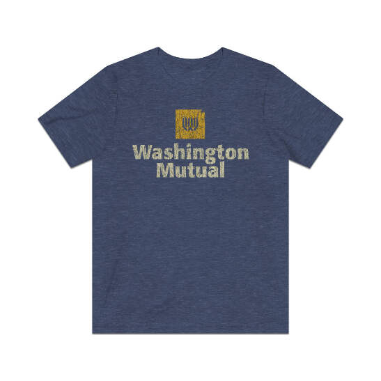 Description The Great Seattle Fire destroyed the entire central business district of Seattle, Washington on June 6, 1889. Rising from the ashes like a phoenix on September 25, 1889, Washington Mutual was a sign of strength and resolve in a time of destruction and uncertainty. Washington Mutual (WaMu) survived the Great Depression, the savings and loan collapse, and numerous recessions over the years. In 2007, a combination of subprime loans bundled as securities and sold on Wall Street to hungry investors, opaque financial derivatives that posed a systemic threat, an unsustainable housing boom, banking executives pulling down fat bonuses to take on ever-more risk created the perfect recipe for disaster. By 2008, the Federal Reserve and the Treasury Department were pressuring WaMu to find a buyer to avoid an FDIC takeover, but WaMu pushed on. The FDIC ultimately held a secret auction of WaMu, and on the morning of September 25, 2008 (which happened to be the 119th anniversary of WaMu's establishment), regulators informed officials at JPMorgan Chase that they were the winners. The loss marked the end of Seattle as a major financial center, and WaMu stands as the biggest bank failure in history. Details Like all our designs, this one is treated with our signature ‘relic-ing’ process which includes our own secret recipe of hand-painted chipping, cracking, fading, and just the right touch of yellowing to ensure that it looks the part of a true vintage imprint.** We lay these works of art down on premium Bella+Canvas 3001 Unisex Jersey Short Sleeve Tees, one of the softest, best-wearing t-shirts available today, via state of the art direct to garment (DTG) printing which allows us to create a vintage effect that simply can’t be accomplished with other printing methods. In short, these shirts are everything you’ve dreamed of and more – it feels soft and lightweight with just the right amount of stretch making it comfortable and flattering for both men and women. 100% combed and ring-spun cotton* Fabric weight: 4.2 oz (142 g/m2) 30 single Tear-away label Shoulder-to-shoulder taping Side-seamed Retail fit Runs true to size Sizing Not sure what size is your best fit? We recommend taking one of your current t-shirts, laying it flat and measuring it. The measurements in the chart below are taken with the shirt laying on a flat surface. To get the length, measure from the high shoulder point down to the bottom of the shirt. To get the width, measure approximately 1-inch below the armhole, across the chest, from seam to seam. While our tees are all made using premium, pre-shrunk, ring-spun cotton, there can be some shrinkage depending on your personal wash and dry cycles. With that said, if you're on the fence, we always suggest going up a size. S M L XL 2XL 3XL Width 18 20 22.01 24.02 25.99 28 Length 28 29.02 30 31.03 32.01 33 Sleeves 8.9 9.18 9.45 9.73 10 10.4 All sizes are provided in inches! *Heather colors are 52% combed and ring-spun cotton/48% polyester. Athletic and Black Heather is 90% combed and ring-spun cotton/10% polyester. Ash color is 99% Airlume combed and ring-spun cotton and 1% poly. **Due to the nature of the printing process and different sizes of shirts offered, imprint position and scale may vary slightly from the product images, but we do our best to be as accurate as possible.