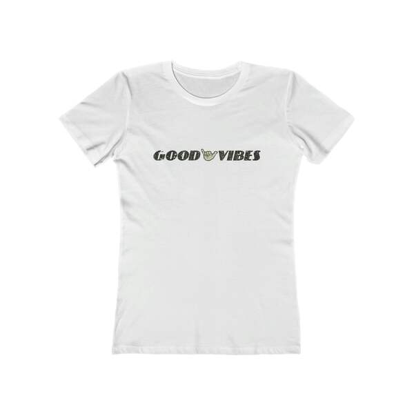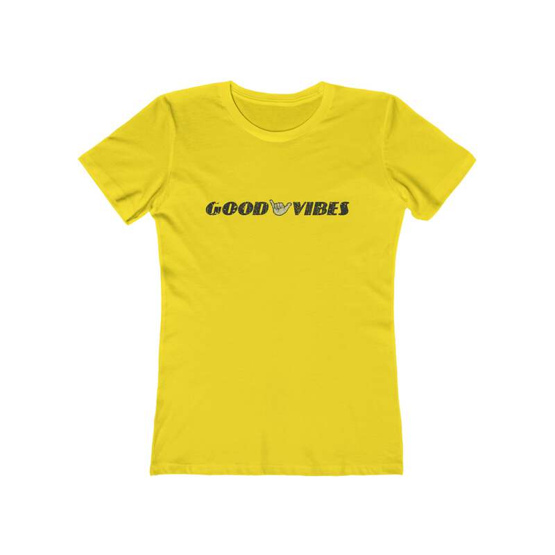 Description Good vibes are always welcome, but after the shit show that was 2020, they're especially welcome in 2021. Details Like all our designs, this one is treated with our signature ‘relic-ing’ process which includes our own secret recipe of hand-painted chipping, cracking, fading, and just the right touch of yellowing to ensure that it looks the part of a true vintage imprint.** We lay these works of art down on premium Next Level 3900 Premium Women’s tees, aka ‘the boyfriend tee, one of the softest, best-wearing women’s t-shirts available today. We utilize state of the art direct to garment (DTG) printing which allows us to create a vintage effect that simply can’t be accomplished with other printing methods. In short, these shirts are everything you’ve dreamed of and more – it feels soft and lightweight with just the right amount of stretch making it both comfortable and flattering while the feminine fit and shorter sleeves add a special touch to this classic missy cut tee. Slim fit with longer body length 100% Soft cotton (fibre content may vary for different colors) Light fabric (145 grams/4.3oz.) 32 singles Tear away label Runs smaller than usual Sizing Not sure what size is your best fit? We recommend taking one of your current t-shirts, laying it flat and measuring it. The measurements in the chart below are taken with the shirt laying on a flat surface. To get the length, measure from the high shoulder point down to the bottom of the shirt. To get the width, measure approximately 1-inch below the armhole, across the chest, from seam to seam. The Next Level 3900 is a fitted women's t-shirt, so if you are looking for a roomier fit, we suggest going up a size or with the unisex Bella + Canvas 3001 we print our men's t-shirts on as they are the same super soft ring-spun cotton that feels like an old favorite. While our tees are all made using premium, pre-shrunk, ring-spun cotton, there can be some shrinkage depending on your personal wash and dry cycles. With that said, if you're on the fence, we always suggest going up a size. S M L XL 2XL 3XL Width, 16.23 17.25 18.23 19.77 21.26 22.76 Length 25.36 25.99 26.62 27.25 27.88 28.51 Sleeves 6.82 7.05 7.29 7.52 7.76 8 All sizes are provided in inches! *Heather colors are 90% ring-spun cotton and 10% poly. **Due to the nature of the printing process and different sizes of shirts offered, imprint position and scale may vary slightly from the product images, but we do our best to be as accurate as possible.
