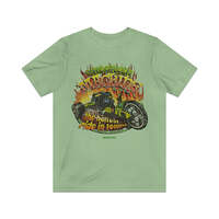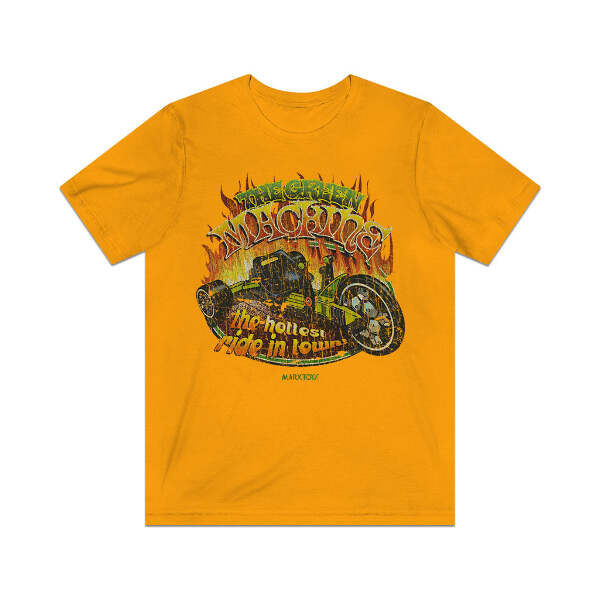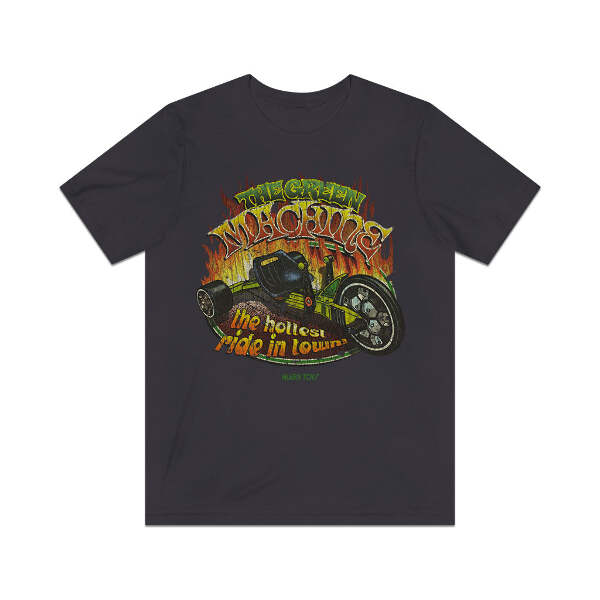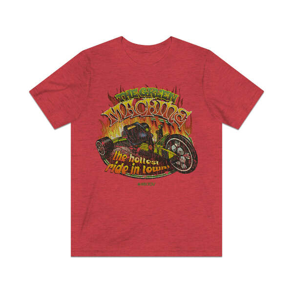 Description In the 70s, Big Wheels were the Harleys of the neighborhood, but when Marx’s Green Machine hit the streets in 1977, kids were green with envy of those who had one of these mean machines. At just under $20, these pedal-operated hot rods featured adjustable bucket seats, “hug the road, tip-proof-design,” stick-shift controls, and Trans-Am style honeycomb mag wheels. Ads described the Green Machine as “mean,” and the “ultimate in low-slung style and performance” with a “low center of gravity” and anyone who ever rode one would agree that they were a freakin' blast! You could slide out on a Big Wheel, but the Green Machine was practically built for it. Rule it up! Details Like all our designs, this one is treated with our signature ‘relic-ing’ process which includes our own secret recipe of hand-painted chipping, cracking, fading, and just the right touch of yellowing to ensure that it looks the part of a true vintage imprint.** We lay these works of art down on premium Bella+Canvas 3001 Unisex Jersey Short Sleeve Tees, one of the softest, best-wearing t-shirts available today, via state of the art direct to garment (DTG) printing which allows us to create a vintage effect that simply can’t be accomplished with other printing methods. In short, these shirts are everything you’ve dreamed of and more – it feels soft and lightweight with just the right amount of stretch making it comfortable and flattering for both men and women. 100% combed and ring-spun cotton* Fabric weight: 4.2 oz (142 g/m2) 30 single Tear-away label Shoulder-to-shoulder taping Side-seamed Retail fit Runs true to size Sizing Not sure what size is your best fit? We recommend taking one of your current t-shirts, laying it flat and measuring it. The measurements in the chart below are taken with the shirt laying on a flat surface. To get the length, measure from the high shoulder point down to the bottom of the shirt. To get the width, measure approximately 1-inch below the armhole, across the chest, from seam to seam. While our tees are all made using premium, pre-shrunk, ring-spun cotton, there can be some shrinkage depending on your personal wash and dry cycles. With that said, if you're on the fence, we always suggest going up a size. S M L XL 2XL 3XL 4XL Width 17.99 20.00 22.01 24.02 25.98 27.99 30.00 Length 27.99 29.02 30.00 31.02 32.01 32.99 33.98 Sleeve length 8.90 9.17 9.45 9.72 10.00 10.39 10.79 All sizes are provided in inches! *Heather colors are 52% combed and ring-spun cotton/48% polyester. Athletic and Black Heather is 90% combed and ring-spun cotton/10% polyester. Ash color is 99% Airlume combed and ring-spun cotton and 1% poly. **Due to the nature of the printing process and different sizes of shirts offered, imprint position and scale may vary slightly from the product images, but we do our best to be as accurate as possible.