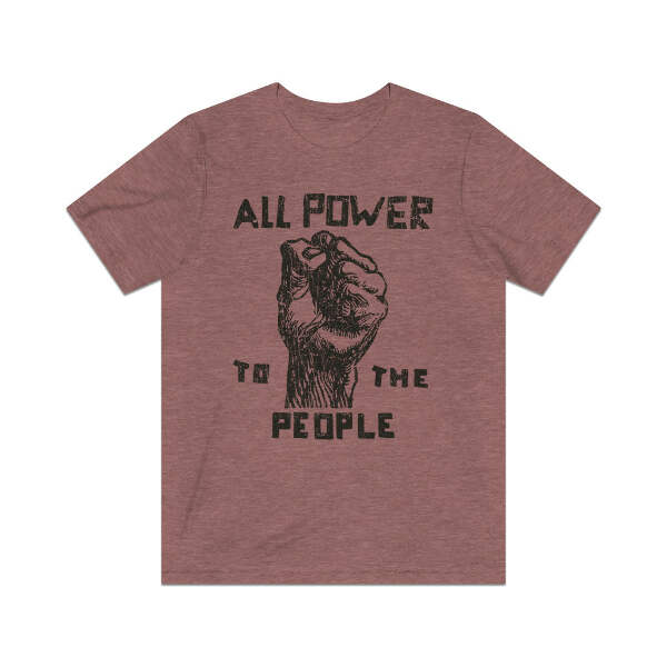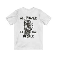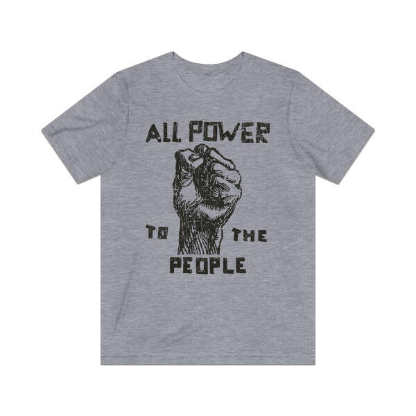 Description Founded in October of 1966 in Oakland, California by Huey Newton and Bobby Seale, the Black Panther Party for Self Defense (BPP) became the most famous black power organization of the late 1960s. Newton and Seale met in 1965 at Merritt College where they were exposed to a burgeoning wave of Black Nationalism, inspired in part by the Afro-American Association, established by Don Warden at the University of California, Berkeley in 1962. The raised fist was a key part of their symbology and while it remains a constant with the black power movement and many groups therein, it's also evolved to be a symbol of standing up against the man for groups and causes of all races, so whether you've got a political cause in mind or are just into power fisting, this one is for you! Details Like all our designs, this one is treated with our signature ‘relic-ing’ process which includes our own secret recipe of hand-painted chipping, cracking, fading, and just the right touch of yellowing to ensure that it looks the part of a true vintage imprint.** We lay these works of art down on premium Bella+Canvas 3001 Unisex Jersey Short Sleeve Tees, one of the softest, best-wearing t-shirts available today, via state of the art direct to garment (DTG) printing which allows us to create a vintage effect that simply can’t be accomplished with other printing methods. In short, these shirts are everything you’ve dreamed of and more – it feels soft and lightweight with just the right amount of stretch making it comfortable and flattering for both men and women. 100% combed and ring-spun cotton* Fabric weight: 4.2 oz (142 g/m2) 30 single Tear-away label Shoulder-to-shoulder taping Side-seamed Retail fit Runs true to size Sizing Not sure what size is your best fit? We recommend taking one of your current t-shirts, laying it flat and measuring it. The measurements in the chart below are taken with the shirt laying on a flat surface. To get the length, measure from the high shoulder point down to the bottom of the shirt. To get the width, measure approximately 1-inch below the armhole, across the chest, from seam to seam. While our tees are all made using premium, pre-shrunk, ring-spun cotton, there can be some shrinkage depending on your personal wash and dry cycles. With that said, if you're on the fence, we always suggest going up a size. S M L XL 2XL 3XL Width 18 20 22.01 24.02 25.99 28 Length 28 29.02 30 31.03 32.01 33 Sleeves 8.9 9.18 9.45 9.73 10 10.4 All sizes are provided in inches! *Heather colors are 52% combed and ring-spun cotton/48% polyester. Athletic and Black Heather is 90% combed and ring-spun cotton/10% polyester. Ash color is 99% Airlume combed and ring-spun cotton and 1% poly. **Due to the nature of the printing process and different sizes of shirts offered, imprint position and scale may vary slightly from the product images, but we do our best to be as accurate as possible.