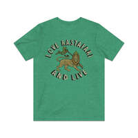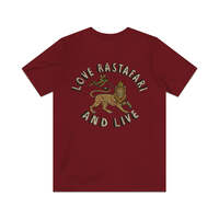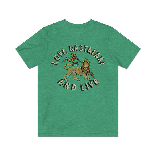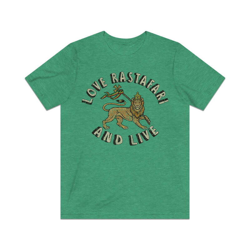 Description Love Rastafari And Live is a 1976 single by Jamaican Roots Reggae/Dub band, The Mighty Randells, that very much celebrated the Rastafari belief system. Rastafari, sometimes called Rastafarianism, is a religion that developed in Jamaica during the 1930s, and is classified as both a new religious movement and a social movement by scholars of religion. Practitioners are known as Rastafari, Rastafarians, or Rastas, and share a pair of fundamental moral principles known as the "two great commandments" which are "love of God" and "love of neighbor." Many Rastas believe that to determine whether they should undertake a certain act or not, they should consult the presence of Jah within themselves. In the early decades of the religion's development, Rastas often said "Peace and Love" as a greeting, although the use of this declined as Rastafari matured. Details Like all our designs, this one is treated with our signature ‘relic-ing’ process which includes our own secret recipe of hand-painted chipping, cracking, fading, and just the right touch of yellowing to ensure that it looks the part of a true vintage imprint.** We lay these works of art down on premium Bella+Canvas 3001 Unisex Jersey Short Sleeve Tees, one of the softest, best-wearing t-shirts available today, via state of the art direct to garment (DTG) printing which allows us to create a vintage effect that simply can’t be accomplished with other printing methods. In short, these shirts are everything you’ve dreamed of and more – it feels soft and lightweight with just the right amount of stretch making it comfortable and flattering for both men and women. 100% combed and ring-spun cotton* Fabric weight: 4.2 oz (142 g/m2) 30 single Tear-away label Shoulder-to-shoulder taping Side-seamed Retail fit Runs true to size Sizing Not sure what size is your best fit? We recommend taking one of your current t-shirts, laying it flat and measuring it. The measurements in the chart below are taken with the shirt laying on a flat surface. To get the length, measure from the high shoulder point down to the bottom of the shirt. To get the width, measure approximately 1-inch below the armhole, across the chest, from seam to seam. While our tees are all made using premium, pre-shrunk, ring-spun cotton, there can be some shrinkage depending on your personal wash and dry cycles. With that said, if you're on the fence, we always suggest going up a size. S M L XL 2XL 3XL 4XL Width 17.99 20.00 22.01 24.02 25.98 27.99 30.00 Length 27.99 29.02 30.00 31.02 32.01 32.99 33.98 Sleeve length 8.90 9.17 9.45 9.72 10.00 10.39 10.79 All sizes are provided in inches! *Heather colors are 52% combed and ring-spun cotton/48% polyester. Athletic and Black Heather is 90% combed and ring-spun cotton/10% polyester. Ash color is 99% Airlume combed and ring-spun cotton and 1% poly. **Due to the nature of the printing process and different sizes of shirts offered, imprint position and scale may vary slightly from the product images, but we do our best to be as accurate as possible.