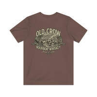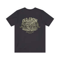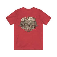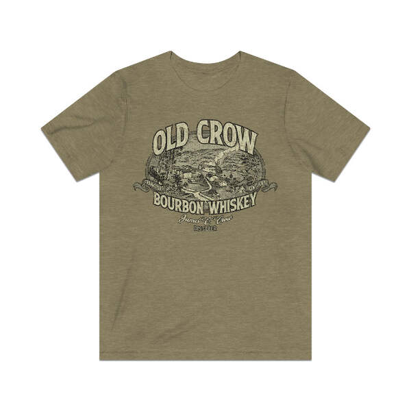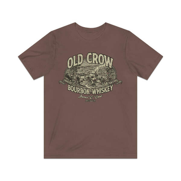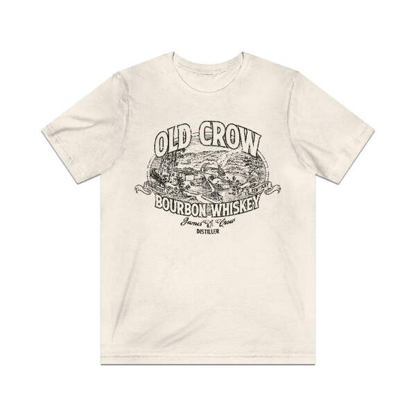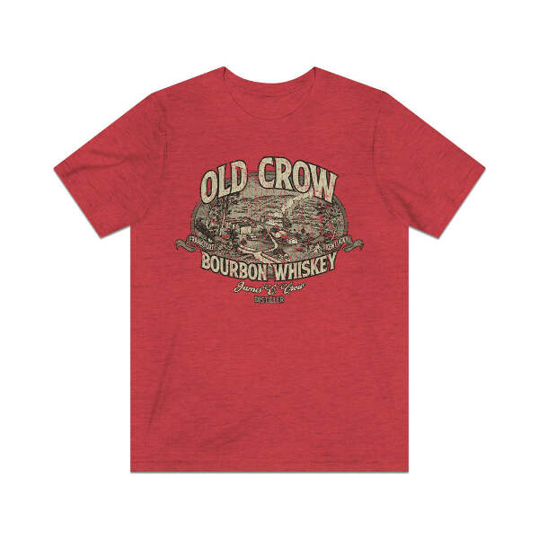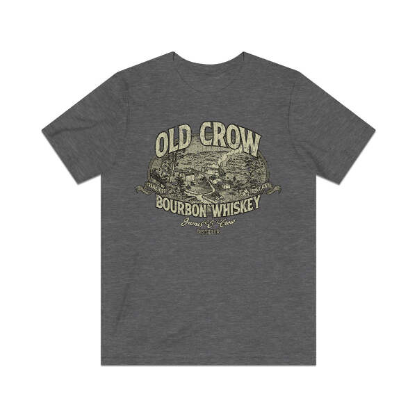 Description James C. Crow was born in Scotland in 1787, and trained in medicine and chemistry at Edinburgh University in the early 1820s. He spent several years learning about whiskey distillation from Scotland's master distillers, before eventually making his way to America in 1835 to try his hand at Kentucky bourbon whiskey. Initially employed at Grier’s Creek Distillery, Crow applied scientific methods to bourbon production, and while he didn't invent the sour mash process, he perfected it, changing the way that bourbon was made forever. Using thermometers, hydrometers, specific gravity, and pH balance checks, he standardized the process, resulting in high quality whiskey that could be produced batch after batch in exacting detail. Crow would move on to work for Oscar Pepper Spirits in 1838, where his whiskey became the first branded Kentucky bourbon label ever produced. His whiskey was sold as “Old Crow” and quickly became the bourbon by which all others were judged. The brand remained in the hands of Oscar Pepper after Crow died in 1856, and thankfully, Crow had trained a distiller who continued to make it with his method. Crow had also maintained a detailed ledger with his notes, other people could keep the method in use long after his death. Oscar Pepper died in 1867, and the brand was sold to the firm of Gaines, Berry and Co., who built a new distillery to continue producing Old Crow. Details Like all our designs, this one is treated with our signature ‘relic-ing’ process which includes our own secret recipe of hand-painted chipping, cracking, fading, and just the right touch of yellowing to ensure that it looks the part of a true vintage imprint.** We lay these works of art down on premium Bella+Canvas 3001 Unisex Jersey Short Sleeve Tees, one of the softest, best-wearing t-shirts available today, via state of the art direct to garment (DTG) printing which allows us to create a vintage effect that simply can’t be accomplished with other printing methods. In short, these shirts are everything you’ve dreamed of and more – it feels soft and lightweight with just the right amount of stretch making it comfortable and flattering for both men and women. 100% combed and ring-spun cotton* Fabric weight: 4.2 oz (142 g/m2) 30 single Tear-away label Shoulder-to-shoulder taping Side-seamed Retail fit Runs true to size Sizing Not sure what size is your best fit? We recommend taking one of your current t-shirts, laying it flat and measuring it. The measurements in the chart below are taken with the shirt laying on a flat surface. To get the length, measure from the high shoulder point down to the bottom of the shirt. To get the width, measure approximately 1-inch below the armhole, across the chest, from seam to seam. While our tees are all made using premium, pre-shrunk, ring-spun cotton, there can be some shrinkage depending on your personal wash and dry cycles. With that said, if you're on the fence, we always suggest going up a size. S M L XL 2XL 3XL 4XL Width 17.99 20.00 22.01 24.02 25.98 27.99 30.00 Length 27.99 29.02 30.00 31.02 32.01 32.99 33.98 Sleeve length 8.90 9.17 9.45 9.72 10.00 10.39 10.79 All sizes are provided in inches! *Heather colors are 52% combed and ring-spun cotton/48% polyester. Athletic and Black Heather is 90% combed and ring-spun cotton/10% polyester. Ash color is 99% Airlume combed and ring-spun cotton and 1% poly. **Due to the nature of the printing process and different sizes of shirts offered, imprint position and scale may vary slightly from the product images, but we do our best to be as accurate as possible.