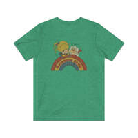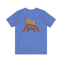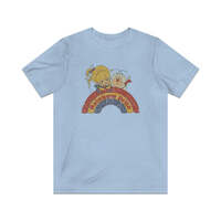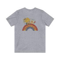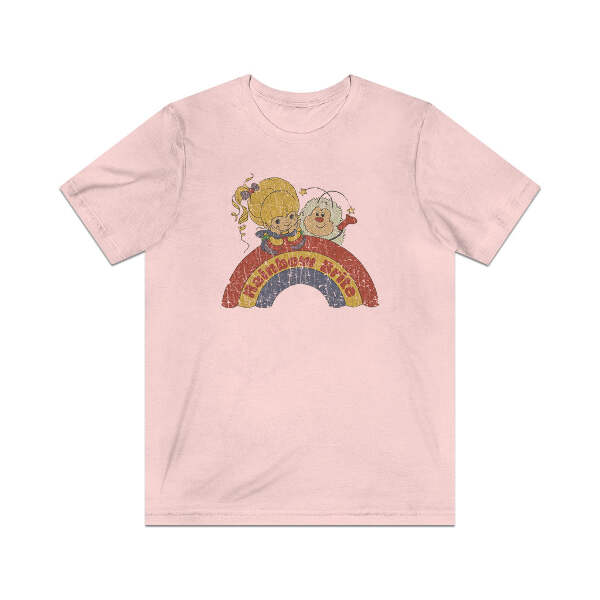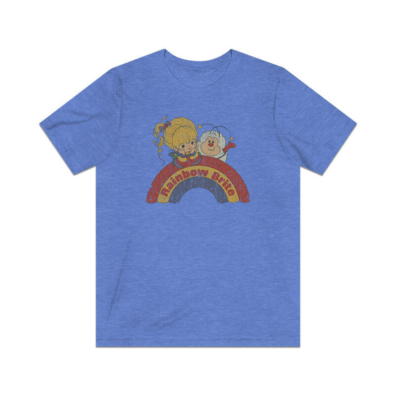 Description Rainbow Brite, known in Japan as Magical Girl Rainbow Brite (魔法少女レインボーブライト, Mahō Shōjo Reinbō Buraito), is a media franchise introduced in 1983. The animated Rainbow Brite television series first aired in 1984 and the same year a range of dolls and other merchandise was released. A theatrical feature-length film was released in 1985 and there was a short-lived reboot in 2014 with a three-part miniseries.The general synopsis goes something like this: a young girl named Wisp is brought to a gray, desolate land with the mission to bring color to this fictional world by locating the Sphere of Light. Along the way, she befriends a furry creature named Twink and a magnificent horse named Starlite, and finds a mysterious baby who turns out to be the key to her mission. With the help of her new friends, Wisp locates the legendary Color Belt and rescues the Color Kids, who had been trapped by the King of Shadows. Using the Color Belt, Wisp, and the Sphere of Light defeat the King of Shadows, liberate the sprites and bring color and beauty to the land, henceforth called Rainbow Land. Wisp is renamed Rainbow Brite in honor of her new role as leader of the Color Kids, who are together in charge of all the colors in the universe. Details Like all our designs, this one is treated with our signature ‘relic-ing’ process which includes our own secret recipe of hand-painted chipping, cracking, fading, and just the right touch of yellowing to ensure that it looks the part of a true vintage imprint.** We lay these works of art down on premium Bella+Canvas 3001 Unisex Jersey Short Sleeve Tees, one of the softest, best-wearing t-shirts available today, via state of the art direct to garment (DTG) printing which allows us to create a vintage effect that simply can’t be accomplished with other printing methods. In short, these shirts are everything you’ve dreamed of and more – it feels soft and lightweight with just the right amount of stretch making it comfortable and flattering for both men and women. 100% combed and ring-spun cotton* Fabric weight: 4.2 oz (142 g/m2) 30 single Tear-away label Shoulder-to-shoulder taping Side-seamed Retail fit Runs true to size Sizing Not sure what size is your best fit? We recommend taking one of your current t-shirts, laying it flat and measuring it. The measurements in the chart below are taken with the shirt laying on a flat surface. To get the length, measure from the high shoulder point down to the bottom of the shirt. To get the width, measure approximately 1-inch below the armhole, across the chest, from seam to seam. While our tees are all made using premium, pre-shrunk, ring-spun cotton, there can be some shrinkage depending on your personal wash and dry cycles. With that said, if you're on the fence, we always suggest going up a size. S M L XL 2XL 3XL 4XL Width 17.99 20.00 22.01 24.02 25.98 27.99 30.00 Length 27.99 29.02 30.00 31.02 32.01 32.99 33.98 Sleeve length 8.90 9.17 9.45 9.72 10.00 10.39 10.79 All sizes are provided in inches! *Heather colors are 52% combed and ring-spun cotton/48% polyester. Athletic and Black Heather is 90% combed and ring-spun cotton/10% polyester. Ash color is 99% Airlume combed and ring-spun cotton and 1% poly. **Due to the nature of the printing process and different sizes of shirts offered, imprint position and scale may vary slightly from the product images, but we do our best to be as accurate as possible.