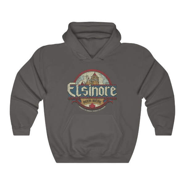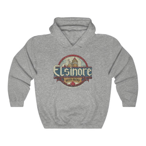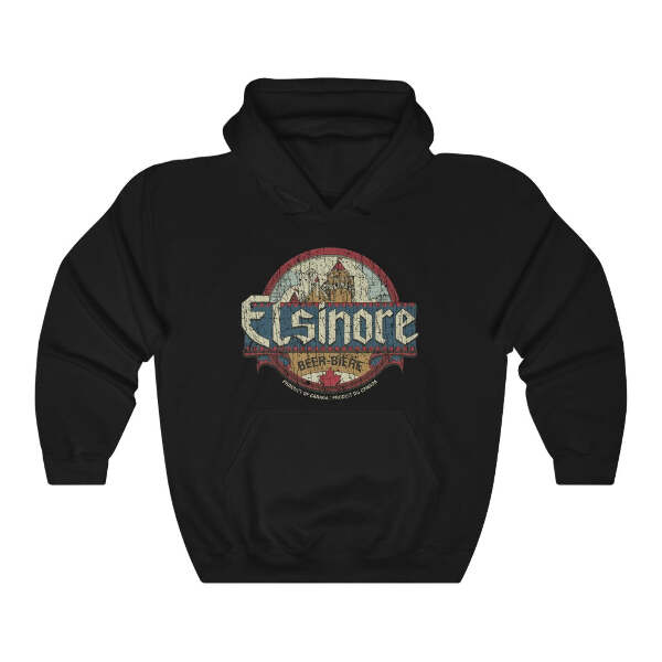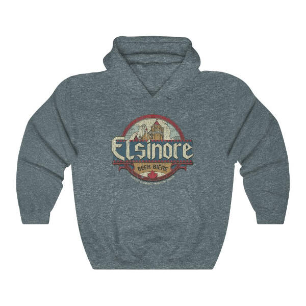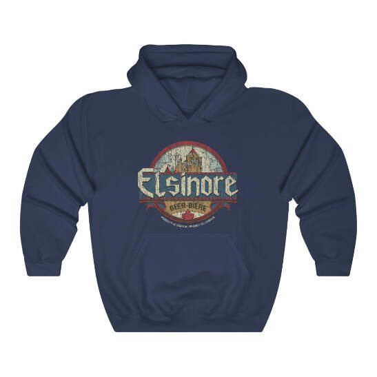 Description Elsinore is the fictional brand of beer that the 1983 Canadian comedy movie Strange Brew is centered around. The story focuses on two unemployed brothers, Bob and Doug McKenzie, who place a live mouse in a beer bottle in an attempt to blackmail the local beer store into giving them free Elsinore beer, but are told to take up the matter with management at the Elsinore brewery. Their plan doesn’t quite work out as instead of getting free beer, the brothers are given jobs on the bottling line inspecting bottles for mice, which is almost as good, right? Needless to say, hi jinks ensue and make this ridiculous movie into the cult classic that it is. Several Canadian brewers were interested in having their branded beers featured instead of the fictional Elsinore, but once they read the script, somewhere between the mouse in the bottle, the brewer tainting beer with mind control drugs, and the overall drunken stupor the brothers remain in throughout the film, they all pulled out. Details Like all our designs, this one is treated with our signature ‘relic-ing’ process which includes our own secret recipe of hand-painted chipping, cracking, fading, and just the right touch of yellowing to ensure that it looks the part of a true vintage imprint.** We lay these works of art down on super soft Gildan 18500 hoodies via state of the art direct to garment (DTG) printing which allows us to create a vintage effect that simply can’t be accomplished with other printing methods. With a large front pouch pocket and drawstrings in a matching color, this hoodie is soft, stylish, and a perfect mid-weight for laying in cooler weather or keeping the chill off during summer nights at the beach. 50% preshrunk cotton, 50% polyester* Fabric weight: 8.0 oz/yd² (271.25 g/m²) Double-lined hood with matching draw cord Quarter-turned to avoid crease down the middle Air-jet spun yarn with a soft feel and reduced pilling 1×1 athletic rib-knit cuffs and waistband with spandex Double-needle stitched collar, shoulders, armholes, cuffs, and hem Front pouch pocket Sizing Not sure what size is your best fit? We recommend taking one of your current sweatshirts, laying it flat and measuring it. The measurements in the chart below are taken with the hoodie laying on a flat surface. To get the length, measure from the high shoulder point down to the bottom of the sweatshirt. To get the width, measure approximately 1-inch below the armhole, across the chest, from seam to seam. While our sweatshirts are made using premium, preshrunk cotton/poly blends, there can be some slight shrinkage depending on your personal wash and dry cycles. With that said, if you’re on the fence or just want to be able to layer over various shirts, we always suggest going up a size as hoodies are meant to be a little on the big side 😎 S M L XL 2XL 3XL 4XL 5XL Sleeves 24.77 24.77 24.77 24.77 24.77 24.77 26.74 26.74 Length 27.17 27.96 29.14 29.93 31.11 31.89 33.08 33.86 Width 20.08 22.05 24.02 25.99 28 29.93 31.89 33.86 All sizes are provided in inches! *Heather colors are 60/40 polyester/cotton. **Due to the nature of the printing process and different sizes offered, imprint position and scale may vary slightly from the product images, but we do our best to be as accurate as possible.