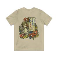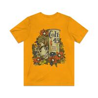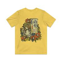 "Dude - All I need are some tasty waves, a cool buzz, and I'm fine." Jeff Spicoli wears this beautiful yellow Colt 45 t-shirt in Fast Times at Ridgemont High and while the movie is over 30 years old, Spicoli's shirt is legendary and continues to be a difficult find, yet here it is in all its well-worn vintage glory. Wait, why so many shades of yellow, you ask? People are always asking what the 'real color' of the one Spicoli wears in the movie, and our answer is always that it depends. The shirt is most visible in the convenience store scene and between the store's fluorescent lights, any analog color timing (grading) work done on the film, plus subsequent color correction and improvements in duplication, means it's a real crap shoot. The color you remember seeing in the theater back in '82 and the one someone else sees in the DVD copy they just bought are often totally different 😎Â