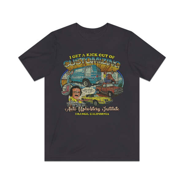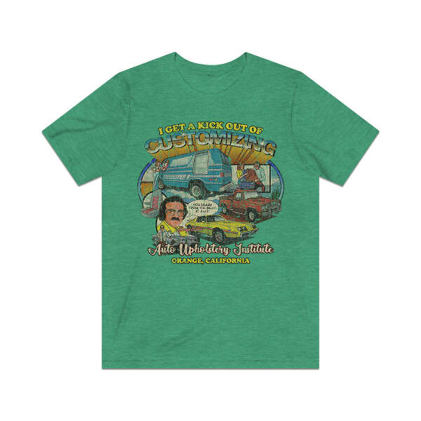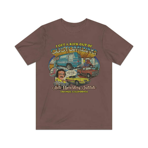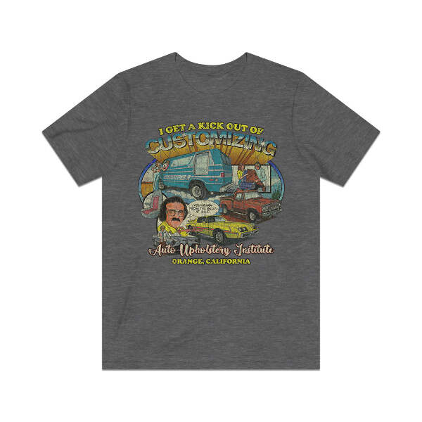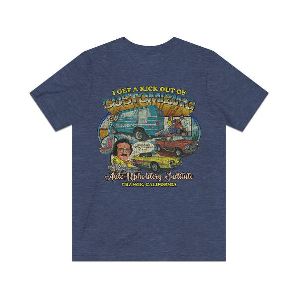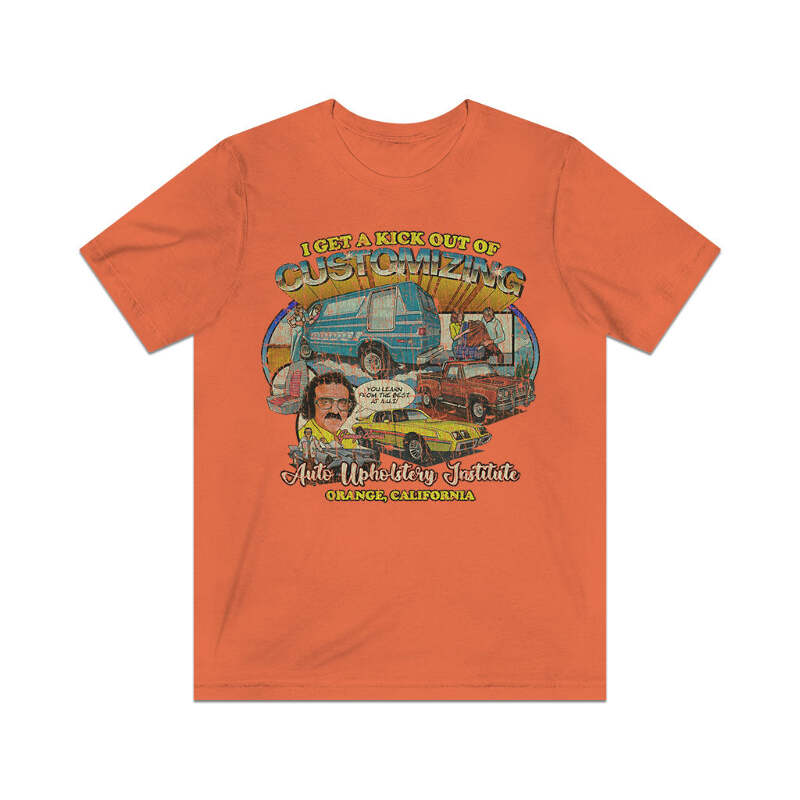 Description Long before online colleges and distance learning were a thing, correspondence courses were the way people could get a degree or certification without having to ever set foot on a college campus. One such institution was Auto Upholstery Institute of Orange, California. In an attempt to ride the car and van customizing wave of the early '70s, A.U.I. set up several correspondence courses to teach auto upholstery and customization. Advertisements in automotive magazines and comic books advised readers to send in the included form for a free course catalog. Once registered, schools sent training materials, lesson worksheets, and the tools and supplies for the selected course. A.U.I. was even accredited by the California Department of Education to issue diplomas in auto upholstery. Details Like all our designs, this one is treated with our signature ‘relic-ing’ process which includes our own secret recipe of hand-painted chipping, cracking, fading, and just the right touch of yellowing to ensure that it looks the part of a true vintage imprint.** We lay these works of art down on premium Bella+Canvas 3001 Unisex Jersey Short Sleeve Tees, one of the softest, best-wearing t-shirts available today, via state of the art direct to garment (DTG) printing which allows us to create a vintage effect that simply can’t be accomplished with other printing methods. In short, these shirts are everything you’ve dreamed of and more – it feels soft and lightweight with just the right amount of stretch making it comfortable and flattering for both men and women. 100% combed and ring-spun cotton* Fabric weight: 4.2 oz (142 g/m2) 30 single Tear-away label Shoulder-to-shoulder taping Side-seamed Retail fit Runs true to size Sizing Not sure what size is your best fit? We recommend taking one of your current t-shirts, laying it flat and measuring it. The measurements in the chart below are taken with the shirt laying on a flat surface. To get the length, measure from the high shoulder point down to the bottom of the shirt. To get the width, measure approximately 1-inch below the armhole, across the chest, from seam to seam. While our tees are all made using premium, pre-shrunk, ring-spun cotton, there can be some shrinkage depending on your personal wash and dry cycles. With that said, if you're on the fence, we always suggest going up a size. S M L XL 2XL 3XL Width 18 20 22.01 24.02 25.99 28 Length 28 29.02 30 31.03 32.01 33 Sleeves 8.9 9.18 9.45 9.73 10 10.4 All sizes are provided in inches! *Heather colors are 52% combed and ring-spun cotton/48% polyester. Athletic and Black Heather is 90% combed and ring-spun cotton/10% polyester. Ash color is 99% Airlume combed and ring-spun cotton and 1% poly. **Due to the nature of the printing process and different sizes of shirts offered, imprint position and scale may vary slightly from the product images, but we do our best to be as accurate as possible.