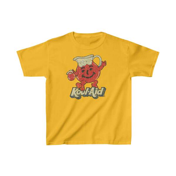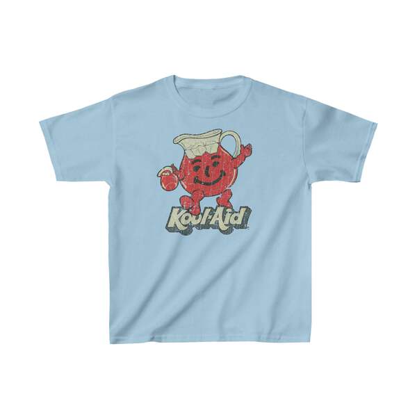 Description Originally conceived as 'Pitcher Man' in 1954 – a glass pitcher with an animated face – it would be two decades before he became Kool-Aid Man, a walking/talking 6-foot-tall pitcher of cherry Kool-Aid, in 1974. Children, parched from playing, or other various activities, would typically exchange a few words referring to their thirst, then put a hand to the side of their mouths and by shouting "Hey, Kool-Aid!," whereupon, Kool-Aid Man would make his grand entrance, breaking through walls, fences, ceilings, or furnishings, uttering the famous words "Oh yeah!," then pour the dehydrated youngsters a glass of Kool-Aid from his own pitcher. Details Like all our designs, this one is treated with our signature ‘relic-ing’ process which includes our own secret recipe of hand-painted chipping, cracking, fading, and just the right touch of yellowing to ensure that it looks the part of a true vintage imprint.** We lay these works of art down on premium Bella+Canvas 3001 Unisex Jersey Short Sleeve Tees, one of the softest, best-wearing t-shirts available today, via state of the art direct to garment (DTG) printing which allows us to create a vintage effect that simply can’t be accomplished with other printing methods. In short, these shirts are everything you’ve dreamed of and more – it feels soft and lightweight with just the right amount of stretch making it comfortable and flattering for both men and women. 100% combed and ring-spun cotton* Fabric weight: 4.2 oz (142 g/m2) 30 single Tear-away label Shoulder-to-shoulder taping Side-seamed Retail fit Runs true to size Sizing Not sure what size is your best fit? We recommend taking one of your current t-shirts, laying it flat and measuring it. The measurements in the chart below are taken with the shirt laying on a flat surface. To get the length, measure from the high shoulder point down to the bottom of the shirt. To get the width, measure approximately 1-inch below the armhole, across the chest, from seam to seam. While our tees are all made using premium, pre-shrunk, ring-spun cotton, there can be some shrinkage depending on your personal wash and dry cycles. With that said, if you're on the fence, we always suggest going up a size. S M L XL 2XL 3XL 4XL Width 17.99 20.00 22.01 24.02 25.98 27.99 30.00 Length 27.99 29.02 30.00 31.02 32.01 32.99 33.98 Sleeve length 8.90 9.17 9.45 9.72 10.00 10.39 10.79 All sizes are provided in inches! *Heather colors are 52% combed and ring-spun cotton/48% polyester. Athletic and Black Heather is 90% combed and ring-spun cotton/10% polyester. Ash color is 99% Airlume combed and ring-spun cotton and 1% poly. **Due to the nature of the printing process and different sizes of shirts offered, imprint position and scale may vary slightly from the product images, but we do our best to be as accurate as possible.