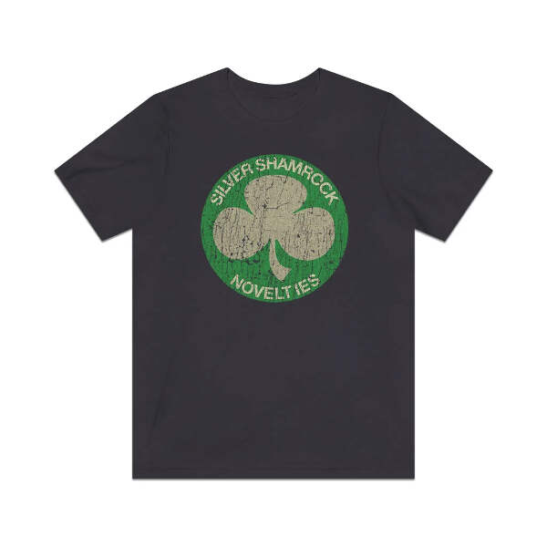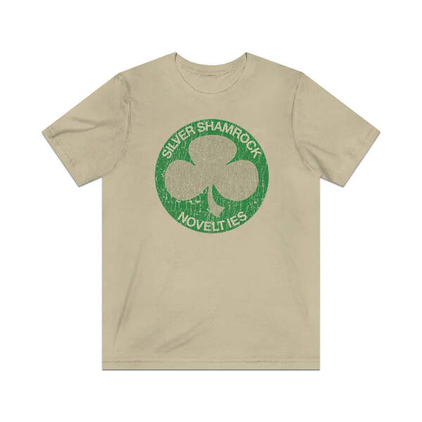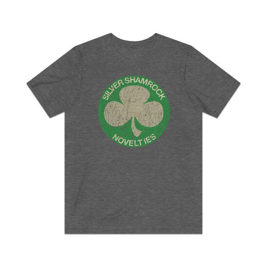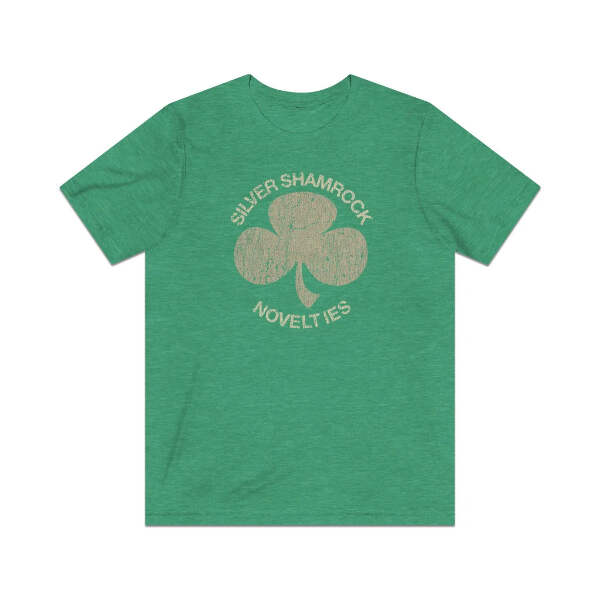 Description Silver Shamrock Novelties was a toy company owned by Conal Cochran, a witchcraft-obsessed madman plotting to use his products to kill children during Halloween 3: Season Of The Witch. While this was perhaps not the best business plan, it was also not the best entry into the Halloween franchise, what with no Michael Meyers and all. Nonetheless, the movie happened and Silver Shamrock Novelties was born. Details Like all our designs, this one is treated with our signature ‘relic-ing’ process which includes our own secret recipe of hand-painted chipping, cracking, fading, and just the right touch of yellowing to ensure that it looks the part of a true vintage imprint.** We lay these works of art down on premium Bella+Canvas 3001 Unisex Jersey Short Sleeve Tees, one of the softest, best-wearing t-shirts available today, via state of the art direct to garment (DTG) printing which allows us to create a vintage effect that simply can’t be accomplished with other printing methods. In short, these shirts are everything you’ve dreamed of and more – it feels soft and lightweight with just the right amount of stretch making it comfortable and flattering for both men and women. 100% combed and ring-spun cotton* Fabric weight: 4.2 oz (142 g/m2) 30 single Tear-away label Shoulder-to-shoulder taping Side-seamed Retail fit Runs true to size Sizing Not sure what size is your best fit? We recommend taking one of your current t-shirts, laying it flat and measuring it. The measurements in the chart below are taken with the shirt laying on a flat surface. To get the length, measure from the high shoulder point down to the bottom of the shirt. To get the width, measure approximately 1-inch below the armhole, across the chest, from seam to seam. While our tees are all made using premium, pre-shrunk, ring-spun cotton, there can be some shrinkage depending on your personal wash and dry cycles. With that said, if you're on the fence, we always suggest going up a size. S M L XL 2XL 3XL Width 18 20 22.01 24.02 25.99 28 Length 28 29.02 30 31.03 32.01 33 Sleeves 8.9 9.18 9.45 9.73 10 10.4 All sizes are provided in inches! *Heather colors are 52% combed and ring-spun cotton/48% polyester. Athletic and Black Heather is 90% combed and ring-spun cotton/10% polyester. Ash color is 99% Airlume combed and ring-spun cotton and 1% poly. **Due to the nature of the printing process and different sizes of shirts offered, imprint position and scale may vary slightly from the product images, but we do our best to be as accurate as possible.