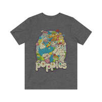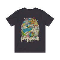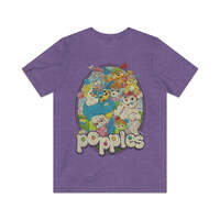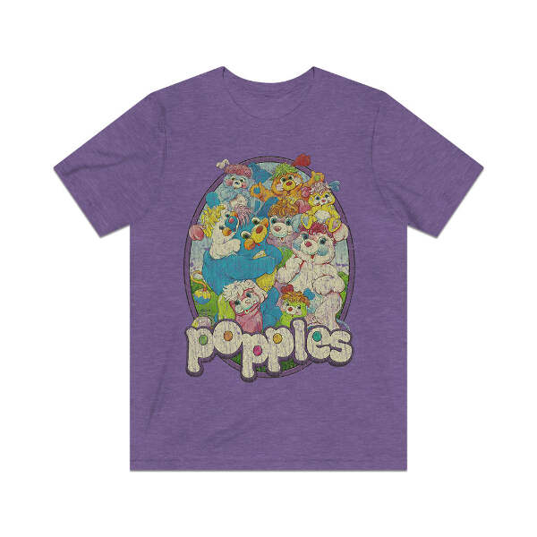 Description Popples were plush toys manufactured between 1986 and 1988. Each toy had a pouch on the back that could be inverted, so the character rolled into the pouch and resembled a brightly colored ball. Popples resembled colorful animals with long, pompom-tipped tails. The name "Popple" is a reference to the popping sound they make when unfolding themselves from such a ball, or pulling objects from their pouches. In the cartoon series of the same name, Popples commonly pulled large items from their pouches that could not possibly fit inside. In the "Popples Alley" episode, one of the Popples' human friends looks inside one of their pouches and sees numerous objects floating in a large void. Details Like all our designs, this one is treated with our signature ‘relic-ing’ process which includes our own secret recipe of hand-painted chipping, cracking, fading, and just the right touch of yellowing to ensure that it looks the part of a true vintage imprint.** We lay these works of art down on premium Bella+Canvas 3001 Unisex Jersey Short Sleeve Tees, one of the softest, best-wearing t-shirts available today, via state of the art direct to garment (DTG) printing which allows us to create a vintage effect that simply can’t be accomplished with other printing methods. In short, these shirts are everything you’ve dreamed of and more – it feels soft and lightweight with just the right amount of stretch making it comfortable and flattering for both men and women. 100% combed and ring-spun cotton* Fabric weight: 4.2 oz (142 g/m2) 30 single Tear-away label Shoulder-to-shoulder taping Side-seamed Retail fit Runs true to size Sizing Not sure what size is your best fit? We recommend taking one of your current t-shirts, laying it flat and measuring it. The measurements in the chart below are taken with the shirt laying on a flat surface. To get the length, measure from the high shoulder point down to the bottom of the shirt. To get the width, measure approximately 1-inch below the armhole, across the chest, from seam to seam. While our tees are all made using premium, pre-shrunk, ring-spun cotton, there can be some shrinkage depending on your personal wash and dry cycles. With that said, if you're on the fence, we always suggest going up a size. S M L XL 2XL 3XL Width 18 20 22.01 24.02 25.99 28 Length 28 29.02 30 31.03 32.01 33 Sleeves 8.9 9.18 9.45 9.73 10 10.4 All sizes are provided in inches! *Heather colors are 52% combed and ring-spun cotton/48% polyester. Athletic and Black Heather is 90% combed and ring-spun cotton/10% polyester. Ash color is 99% Airlume combed and ring-spun cotton and 1% poly. **Due to the nature of the printing process and different sizes of shirts offered, imprint position and scale may vary slightly from the product images, but we do our best to be as accurate as possible.