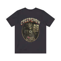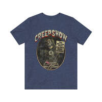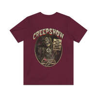 Creepshow is a 1982 anthology film in which five tales of terror from the 1950s comic book series of the same name are presented. The first deals with a demented old man returning from the grave to get the Father's Day cake his murdering daughter never gave him. The second is about a not-too-bright farmer discovering a meteor that turns everything into plant life. The third is about a vengeful husband burying his wife and her lover up to their necks on the beach. The fourth is about a creature that resides in a crate under the steps of a college. The final story is about an ultrarich businessman who gets his comeuppance from cockroaches.