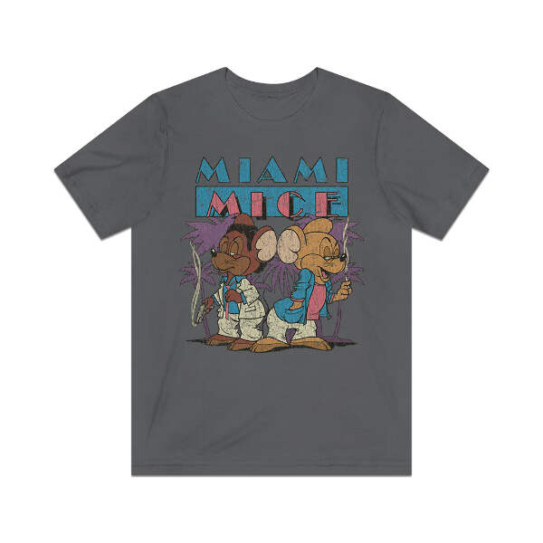 Every t-shirt thrifter has a list of holy grail tees, and this '80s Miami Mice design is one of ours. Redrawn with exacting detail, this 80s TV show parody design is everything, so whether you're into buddy cop mice or just love '80s TV shows, this one is just for you!