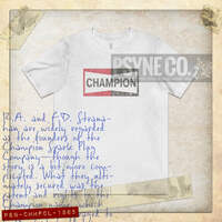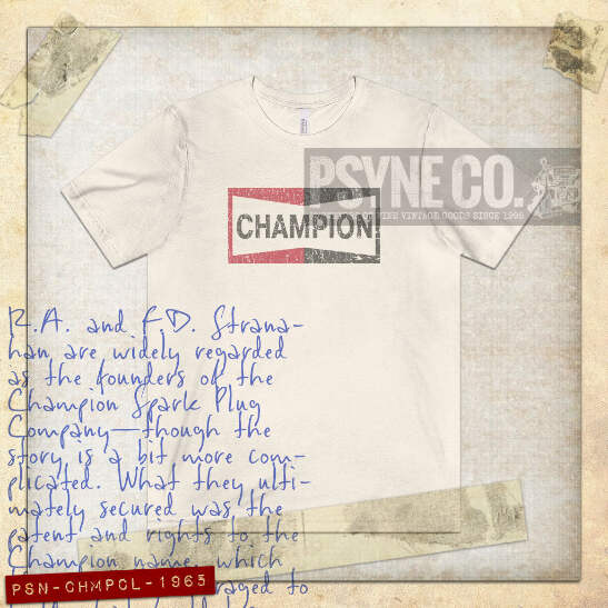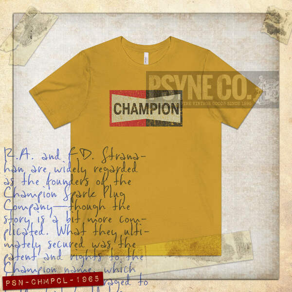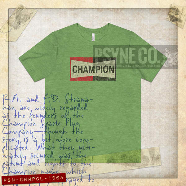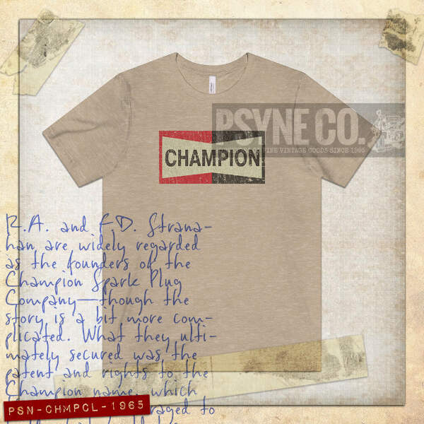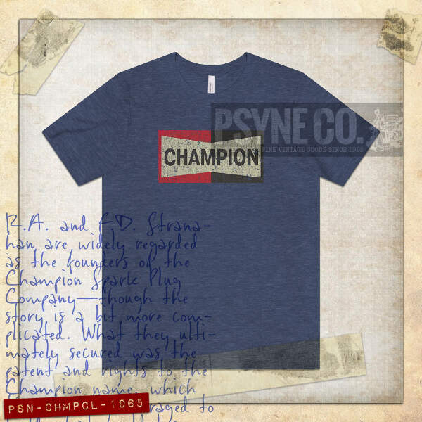 Design Description R.A. and F.D. Stranahan are widely regarded as the founders of the Champion Spark Plug Company—though the story is a bit more complicated. What they ultimately secured was the patent and rights to the Champion name, which they smartly leveraged to build what would become the world’s largest spark plug manufacturer. Early on, however, the brothers were struggling, burdened with more than $20,000 in debt and a company barely staying afloat. Their fortunes changed when Willys-Overland Motor Company offered them an exclusive supply contract, on the condition they relocate to Toledo, Ohio. A similar deal from Henry Ford and Ford Motor Company soon followed, allowing the Stranahans to pay off their debts and build immense wealth. But the roots of the company go back to 1905, when French cyclist Albert Champion founded the Albert Champion Company in Boston to produce porcelain spark plugs bearing his name. His partners were none other than the Stranahan brothers. At some point—whether by force or choice—Champion exited the business, leaving the Stranahans with control of the Champion name. After a legal dispute, Champion was barred from using his own surname commercially and, in 1922, rebranded his business as AC Spark Plug Company, using his initials instead. Meanwhile, the Stranahans moved forward under the Champion name, cementing its place in automotive history. Product Details Like all our designs, this one is treated with our signature ‘relic-ing’ process which includes our own secret recipe of hand-painted chipping, cracking, fading, and just the right touch of yellowing to ensure that it looks the part of a true vintage imprint.** We lay these works of art down on premium Bella+Canvas 3001 Unisex Jersey Short Sleeve Tees, one of the softest, best-wearing t-shirts available today, via state of the art direct to garment (DTG) printing which allows us to create a vintage effect that simply can’t be accomplished with other printing methods. In short, these shirts are everything you’ve dreamed of and more – it feels soft and lightweight with just the right amount of stretch, making it comfortable and flattering for both men and women. 100% combed and ring-spun cotton* Fabric weight: 4.2 oz (142 g/m2) 32 singles for a softer hand Dyed and cut in the USA Shoulder-to-shoulder taping Side-seamed construction Tear-away label Modern retail fit Runs true to size *Heather CVC Colors: 52% Airlume combed and ring-spun cotton, 48% polyester, 32 singles, 4.2 oz. Athletic Heather and Black Heather CVC: 90% Airlume combed and ring-spun cotton, 10% polyester, 32 singles, 4.2 oz. Heather Prism Colors: 99% Airlume combed and ring-spun cotton, 1% polyester, 32 singles, 4.2 oz. Heather Prism Blue: 90% Airlume combed and ring-spun cotton, 10% polyester, 32 singles, 4.2 oz. **Due to the nature of the printing process and different sizes of shirts offered, imprint position and scale may vary slightly from the product images, but we do our best to be as accurate as possible. Screen colors may vary due to differences in screens. Due to the natural nature of cotton, whites may appear off-white rather than bright white. Size Chart Not sure what size is your best fit? We recommend taking one of your current t-shirts, laying it flat and measuring it. The measurements in the chart below are taken with the shirt laying on a flat surface. To get the length, measure from the high shoulder point down to the bottom of the shirt. To get the width, measure approximately 1-inch below the armhole, across the chest, from seam to seam. While our tees are all made using premium, pre-shrunk, ring-spun cotton, there can be some shrinkage depending on your personal wash and dry cycles. With that said, if you’re on the fence, we always suggest going up a size. All sizes are provided in inches! Please note that variations in sizing of up to 1.5 inches are possible.