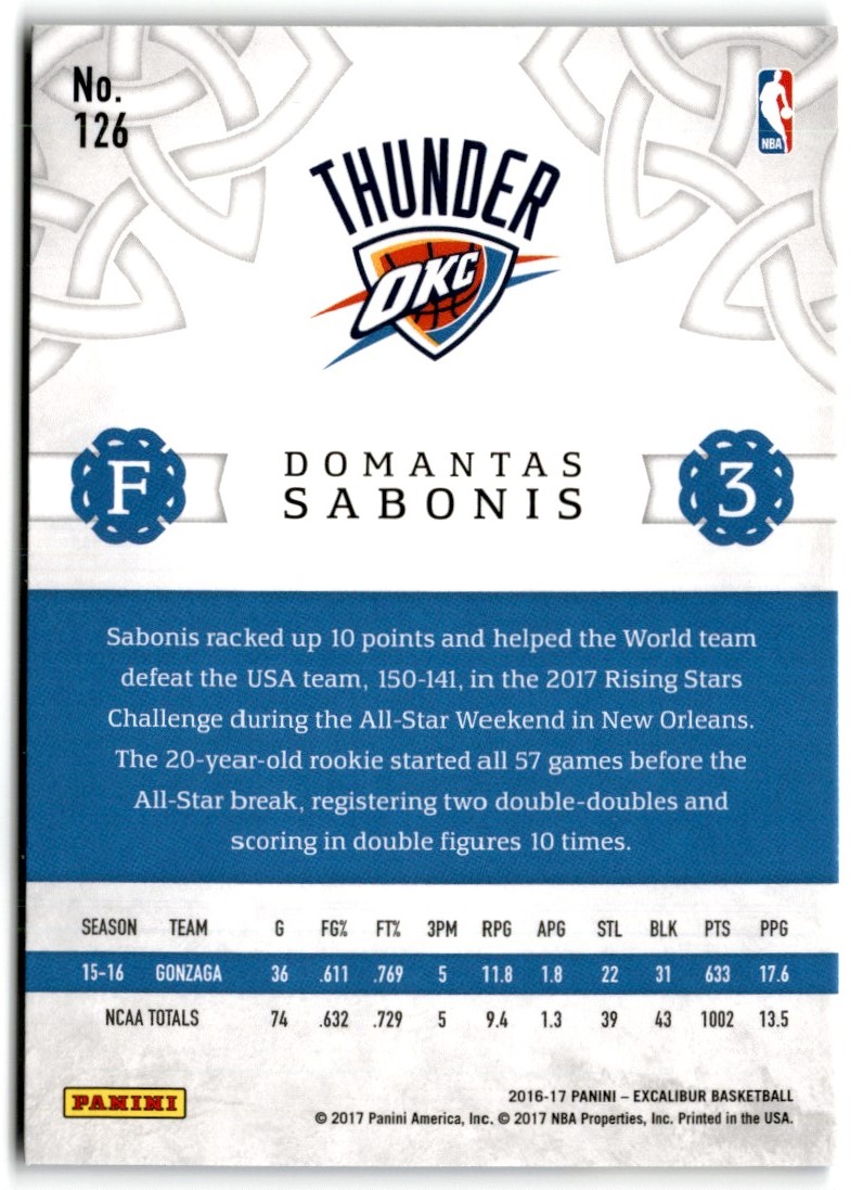 2016-17 Panini Excalibur 126 Domantas Sabonis