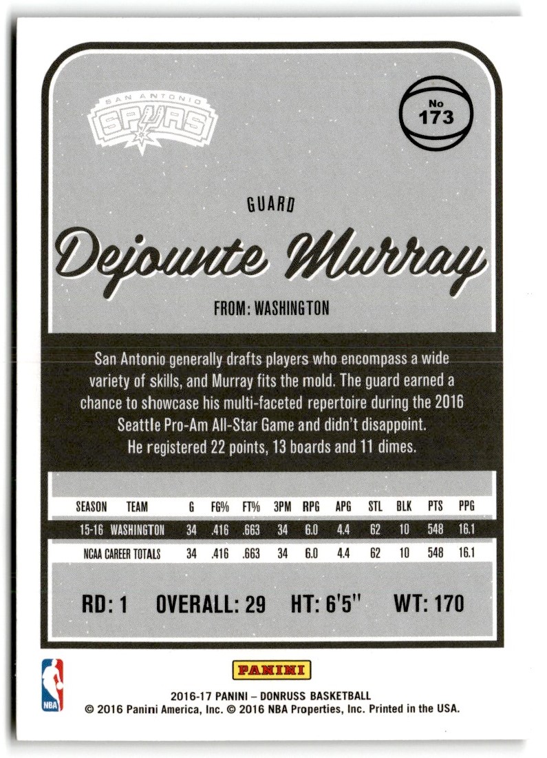 2016-17 Donruss 173 Dejounte Murray