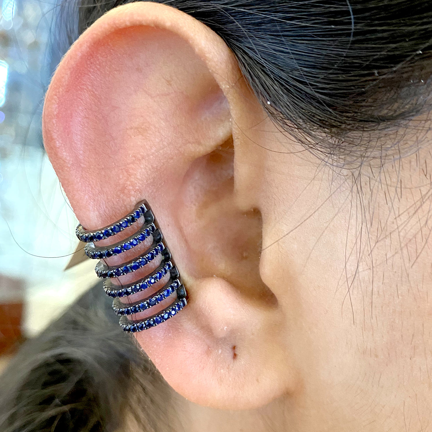 18K Gold 925 Sterling Silver Pave Blue Sapphire Ear Cuff Fine Ear Jewelry Gift