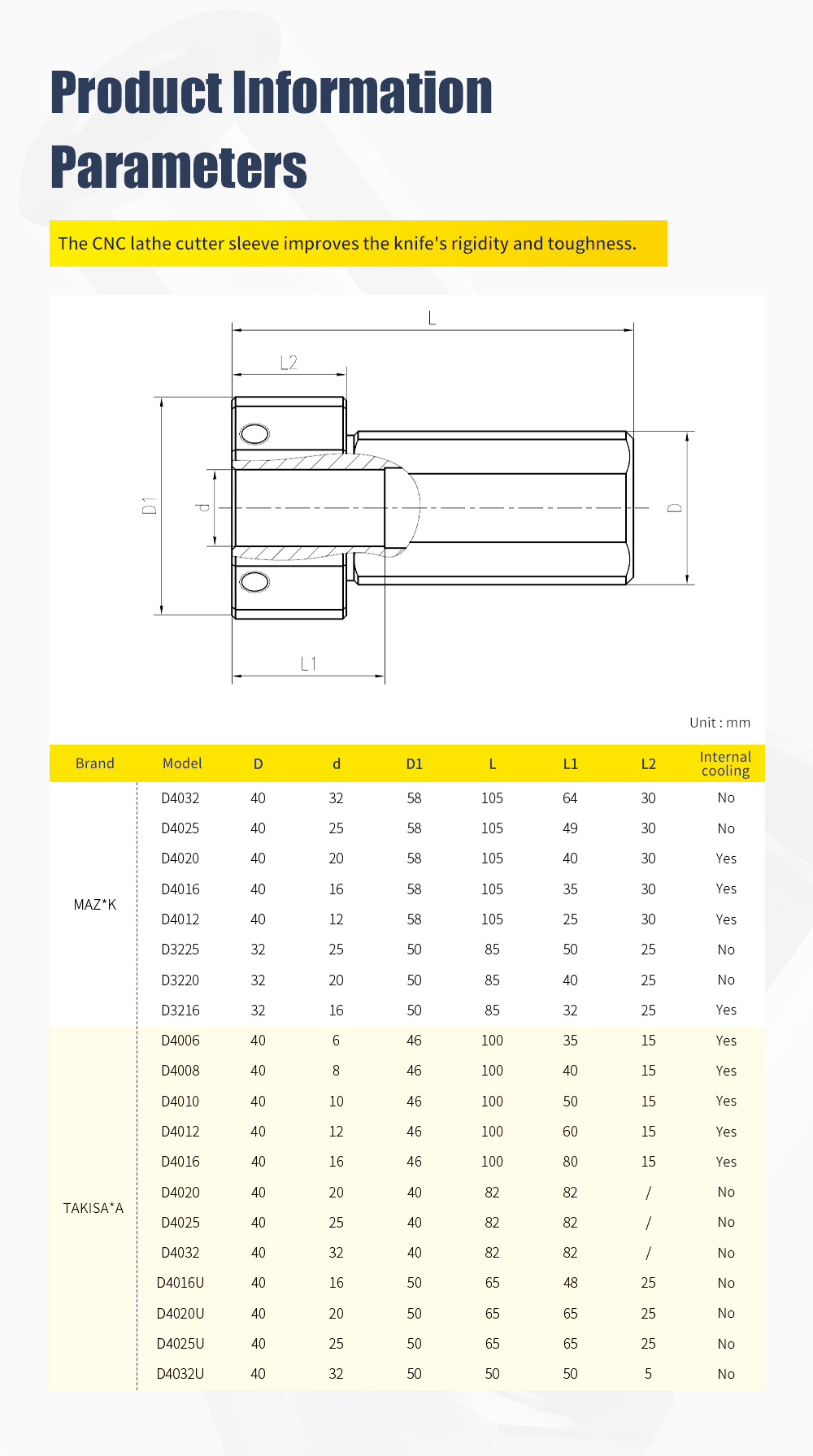 CNC MAZAK Tool Holder Sleeve can be loaded with U-drills, shank drills, extension rods, milling shanks, inner diameter shanks, straight shank tools, etc.