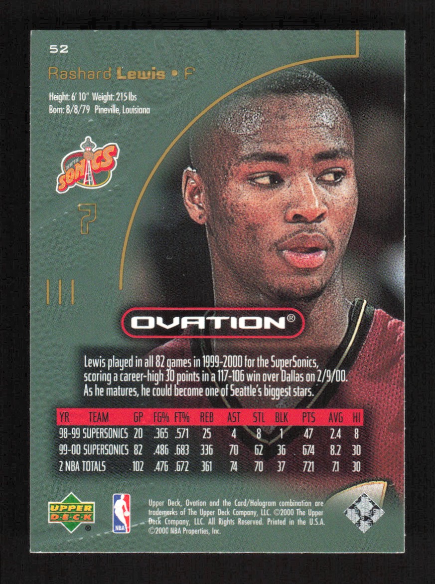 2000-01 Upper Deck Ovation Rashard Lewis #52 Seattle SuperSonics