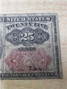 1874 Fifth Issue U.S. 25 Cents Fractional Currency Note Allison Spinner