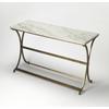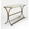 Featuring a polished marble top and antiqued gold toned base This console table brings an airy open style to any space. Try topping it with a vase of blooms for a charming entryway focal point or behind the sofa paired with a lamp for evening reading.