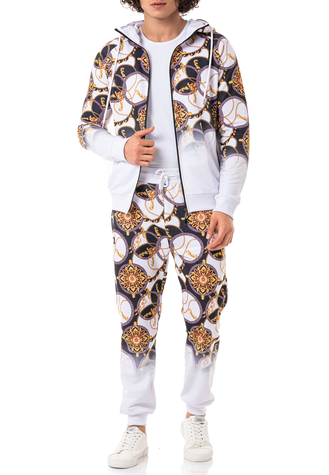 Redbridge Premium Jogginganzug, Trainingsanzug, Set bestehend aus Kapuzenpullover mit Reißverschluss und Freizeit-Jogginghose-Sweatpants, mit Luxury Muster welches nach unten verblasst.