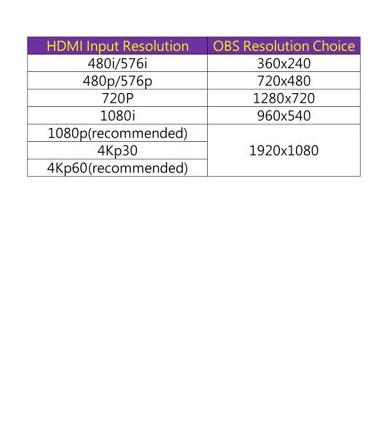 HDMI Input Formats: 480i, 480p, 576i, 576p, 720p, 1080i, 1080P, 4Kp30, 4Kp60