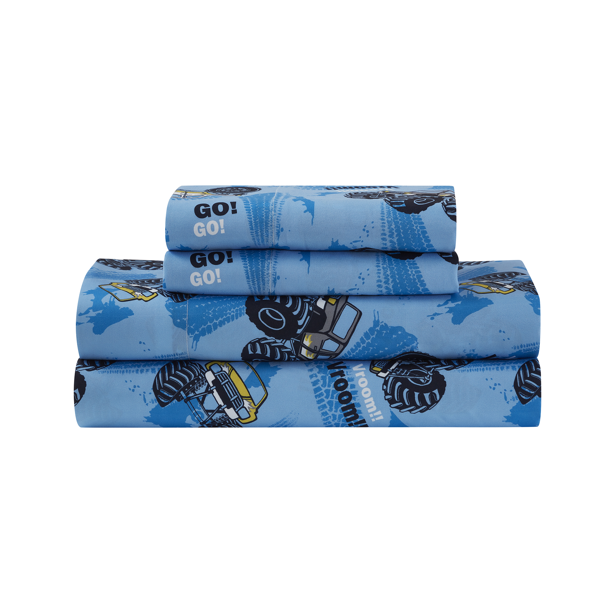 - Color: Blue with monster trucks