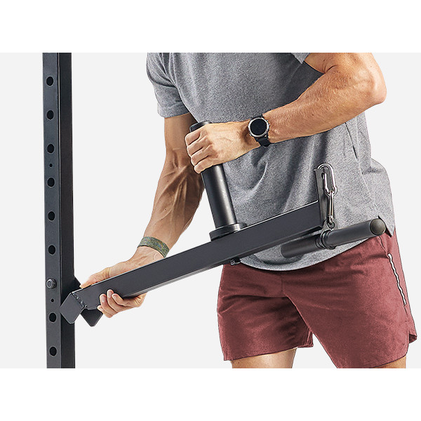 We streamlined the installation with our user-friendly J-hook feature. Simply align the J-hook with the dedicated side post on your cage and insert. The inuitive design allows for effortless height adjustments whenever necessary.