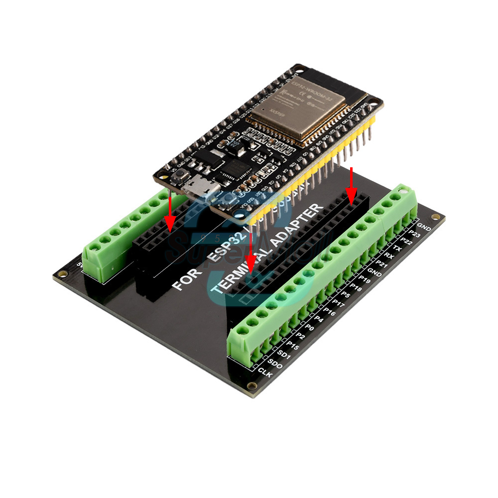 Note: The expansion board is only applicable to the ESP32 WIFI Bluetooth development board CP2102 version without installation holes. Please confirm that the pin width of your ESP32 board is consistent with the pin width of the expansion board