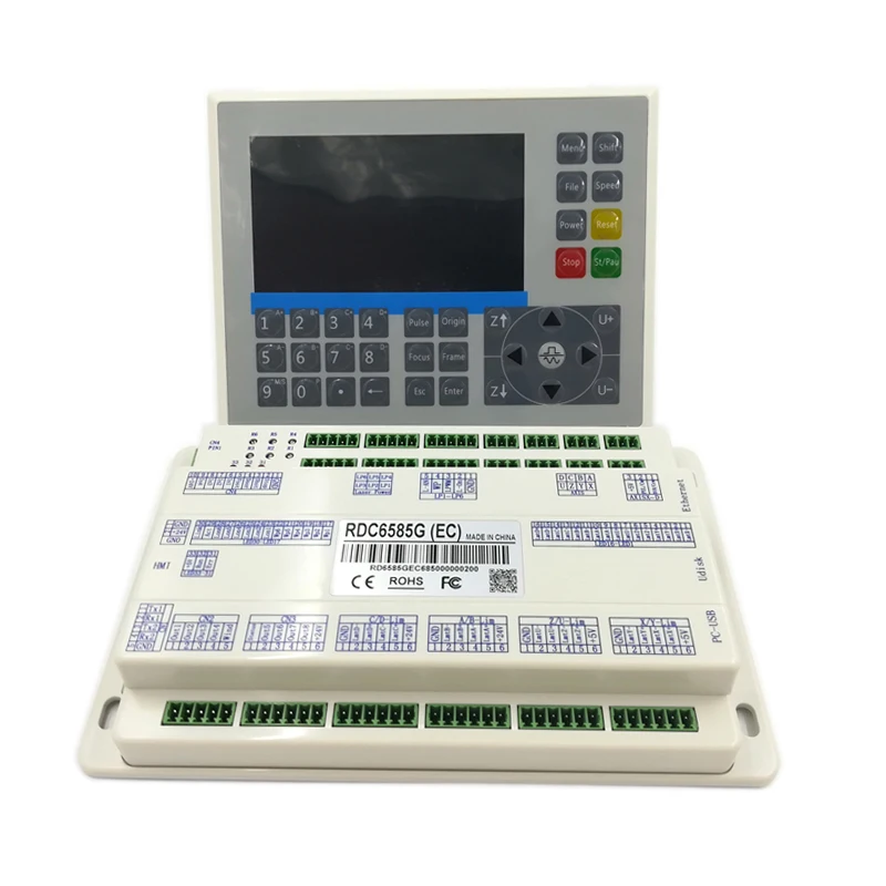 The RDC6585G system is a new generation of laser engraving / cutting control system developed by Ruida Technology. The control system has better hardware stability and better anti-high voltage and anti-static interference characteristics. The man-machine operating system based on the 5-inch color screen has a more friendly operation interface and more powerful functions. The controller includes mo