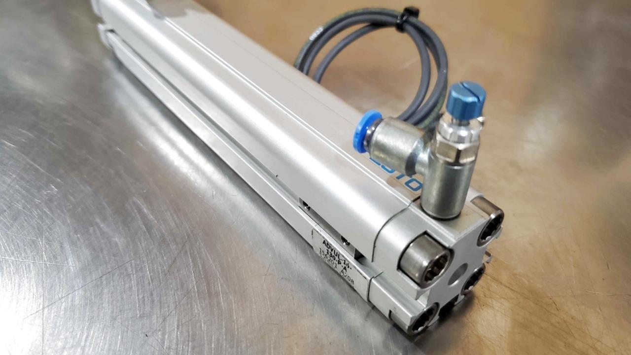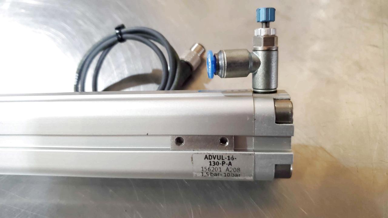 Here is a Festo ADVUL-16-130-P-A Compact Pneumatic Cylinder 156201. In good condition with minimal wear, pulled from working equipment.