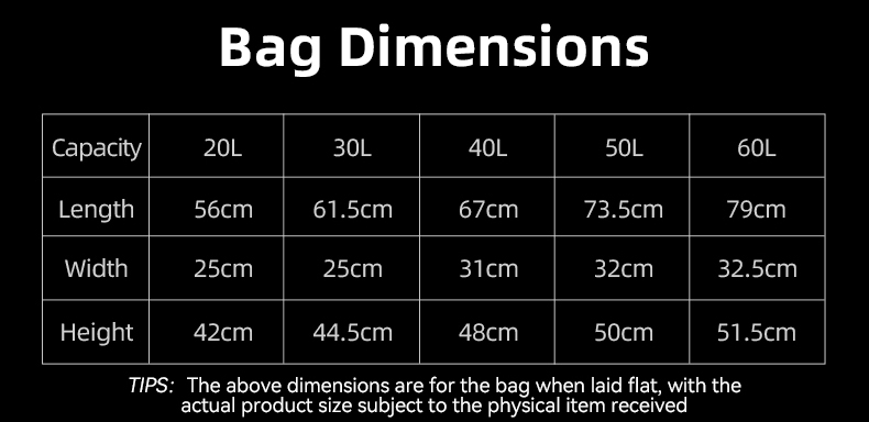 1.Multi size 20-60L Purchase according to demand
