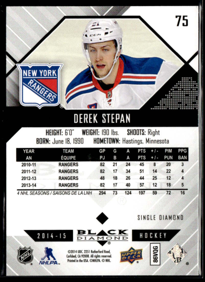 | 2014-15 Upper Deck Black Diamond 75 Derek Stepan | ||||||||||||||||