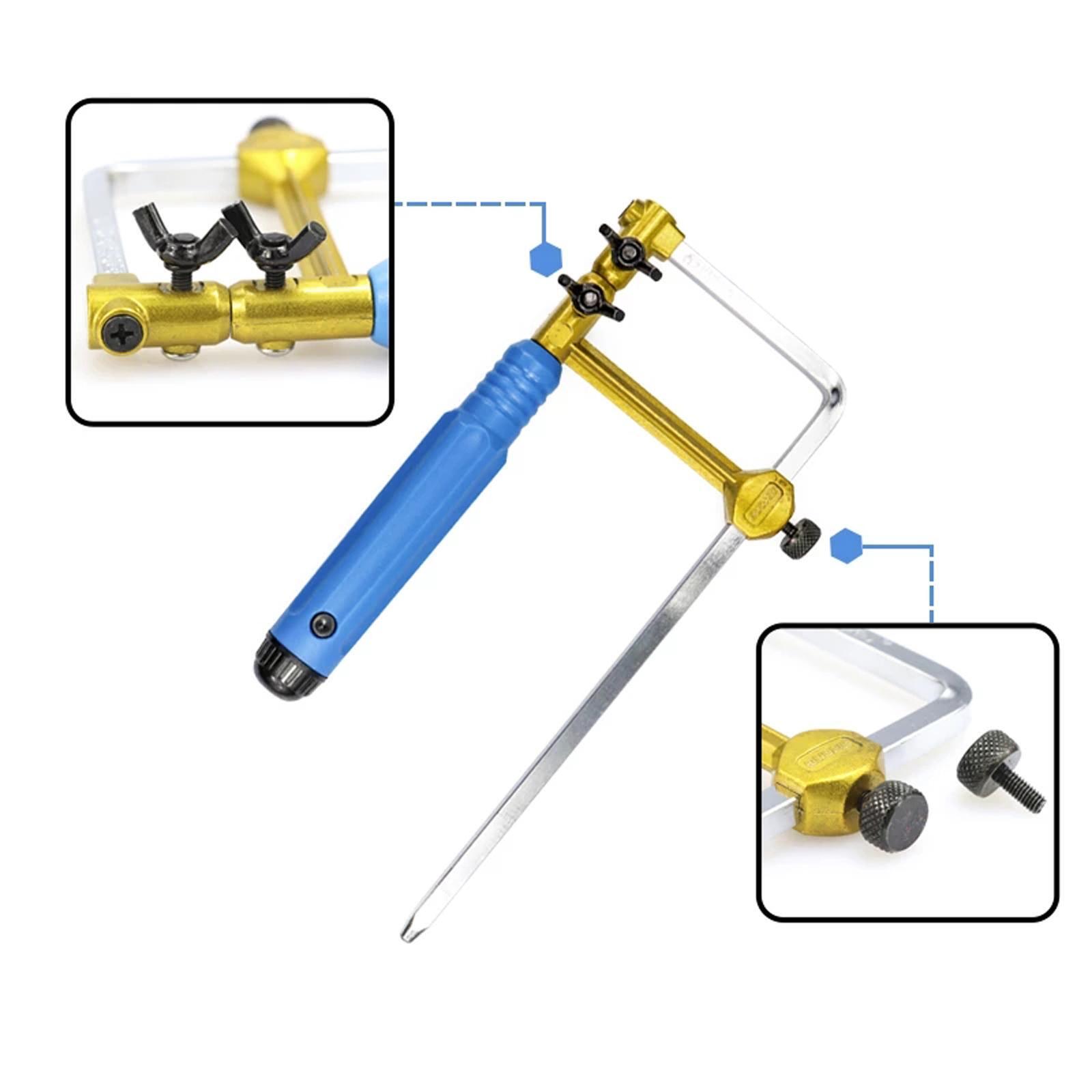 COMFORTABLE GRIP: The jewelers saw with blue handle, saw will be clamped into the frame firmly, the clamp along the mainframe allows for adjustments.